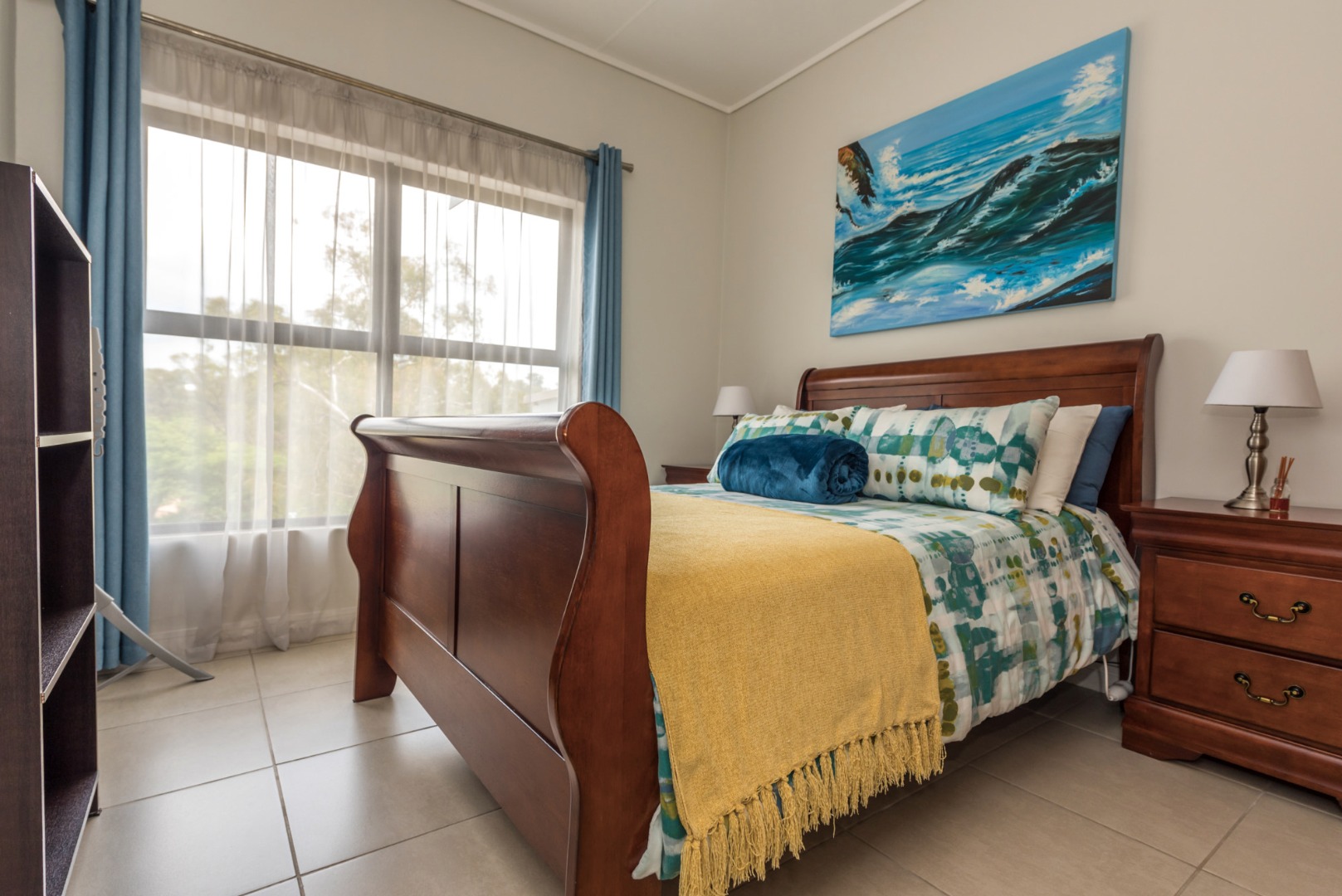 Natural light floods the living spaces, enhanced by large sliding glass doors that lead to a private balcony, perfect for relaxation or entertaining. The apartment boasts durable tiled flooring throughout and neutral wall colours, providing a versatile canvas for personal decor. Both bedrooms are well-proportioned, with one offering an en-suite bathroom for added privacy and convenience.