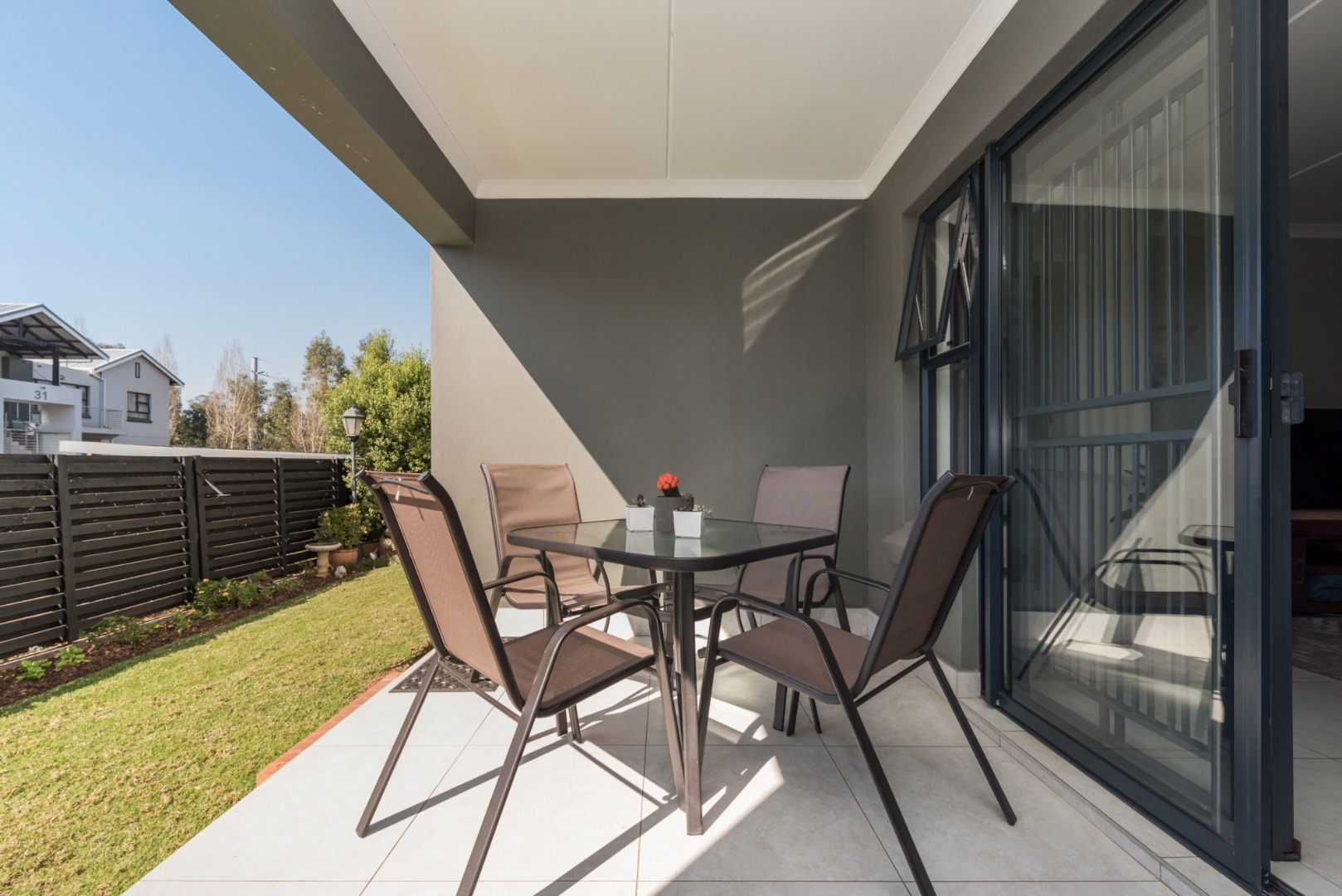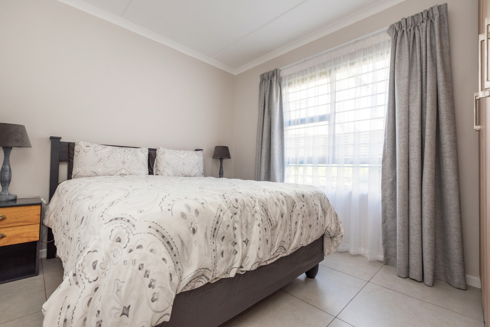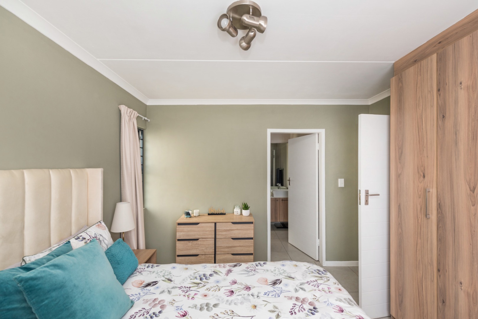 Ideally positioned in the second row from the Modderfontein Reserve, the unit enjoys a tranquil setting with partial views of the lush greenbelt. The home features three well-sized bedrooms and two modern bathrooms, including a main en suite with a double vanity and shower, while the second bathroom is a full family bathroom with both a bath and a shower.