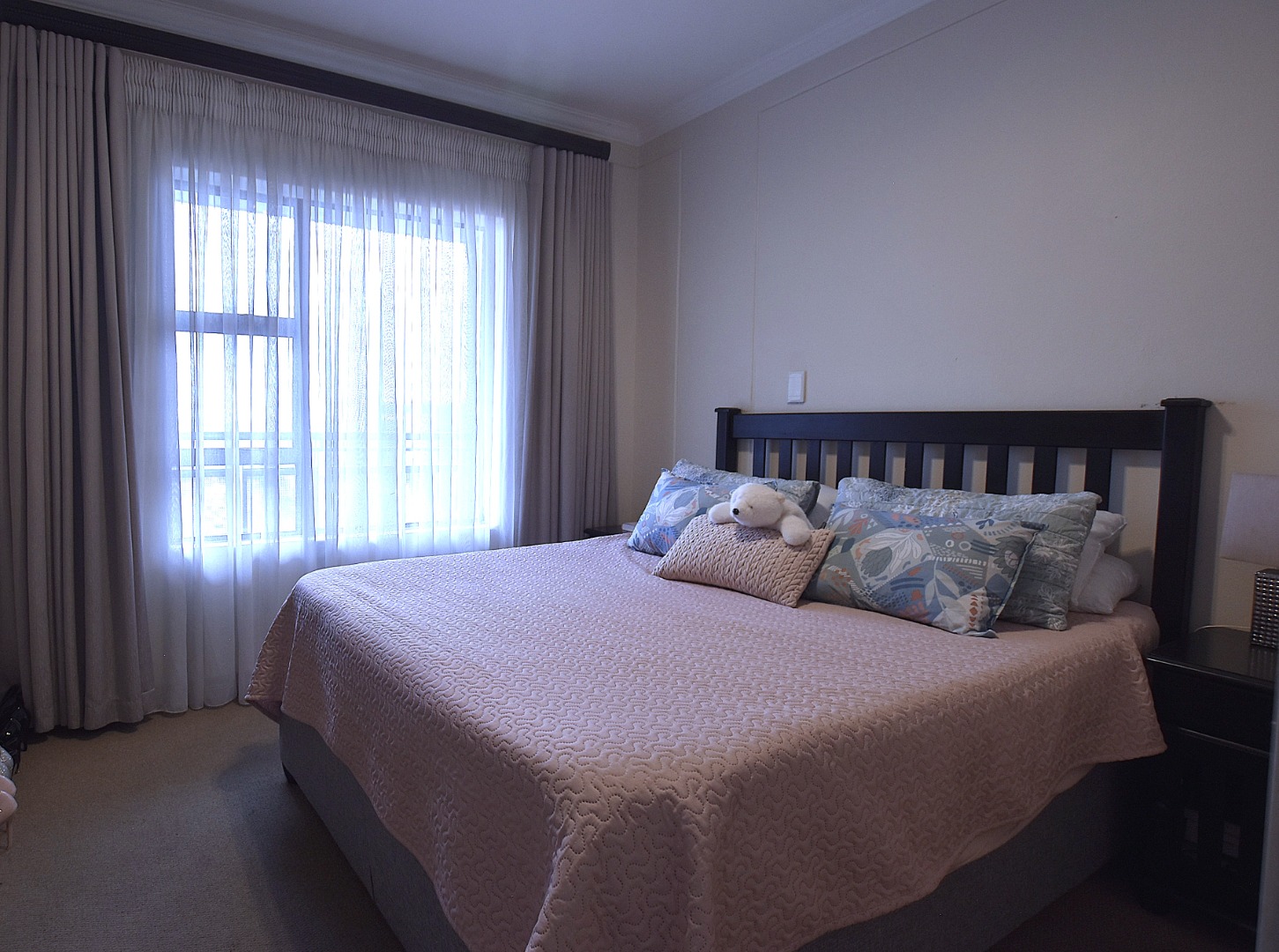 The apartment features a comfortable bedroom with carpeted flooring, served by a well-appointed ensuite bathroom, offering privacy and functionality. Enjoy the outdoors from your balcony. Residents benefit from access to a communal garden, a refreshing swimming pool, and a small gym, enhancing the lifestyle offering. The property includes one dedicated parking bay.