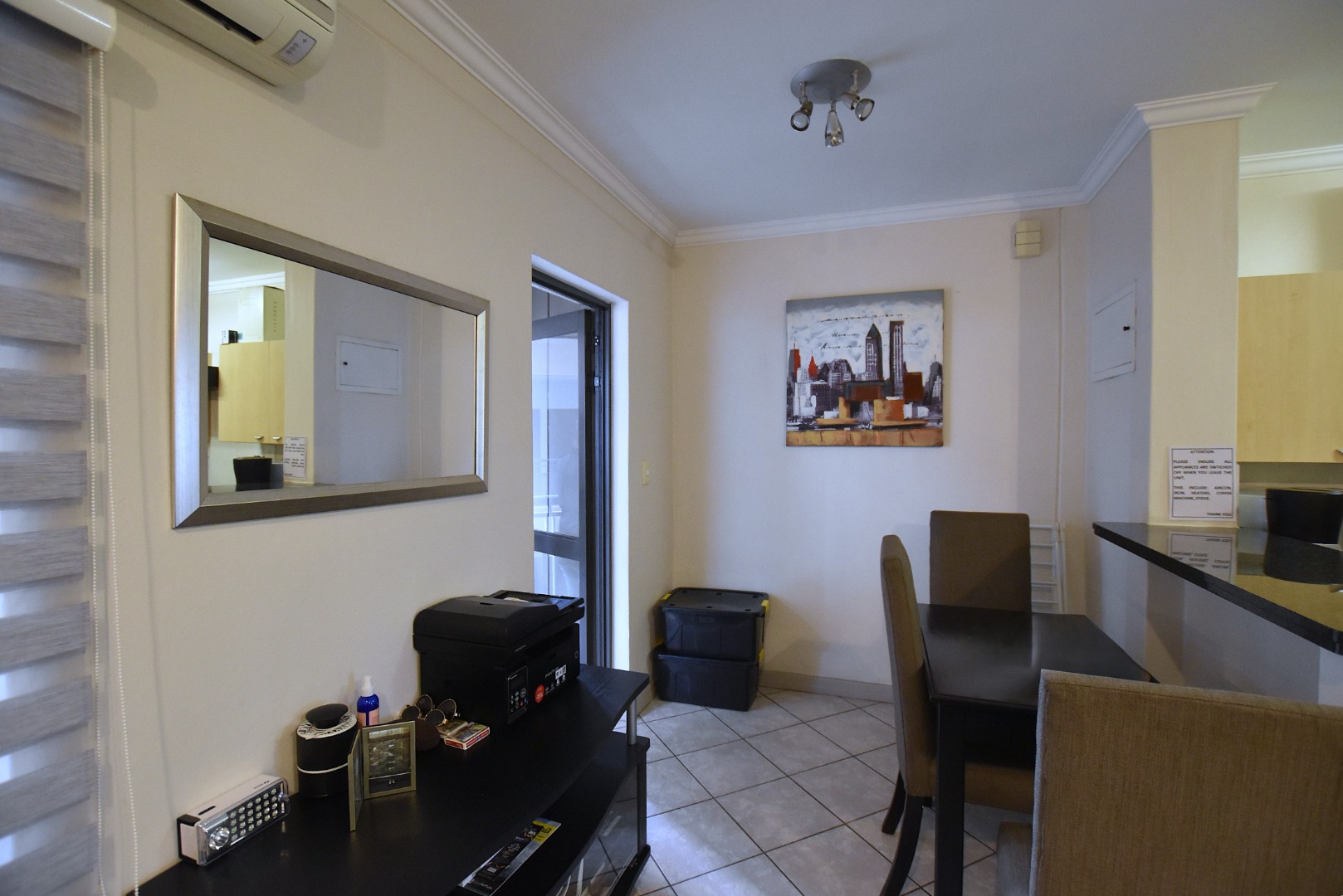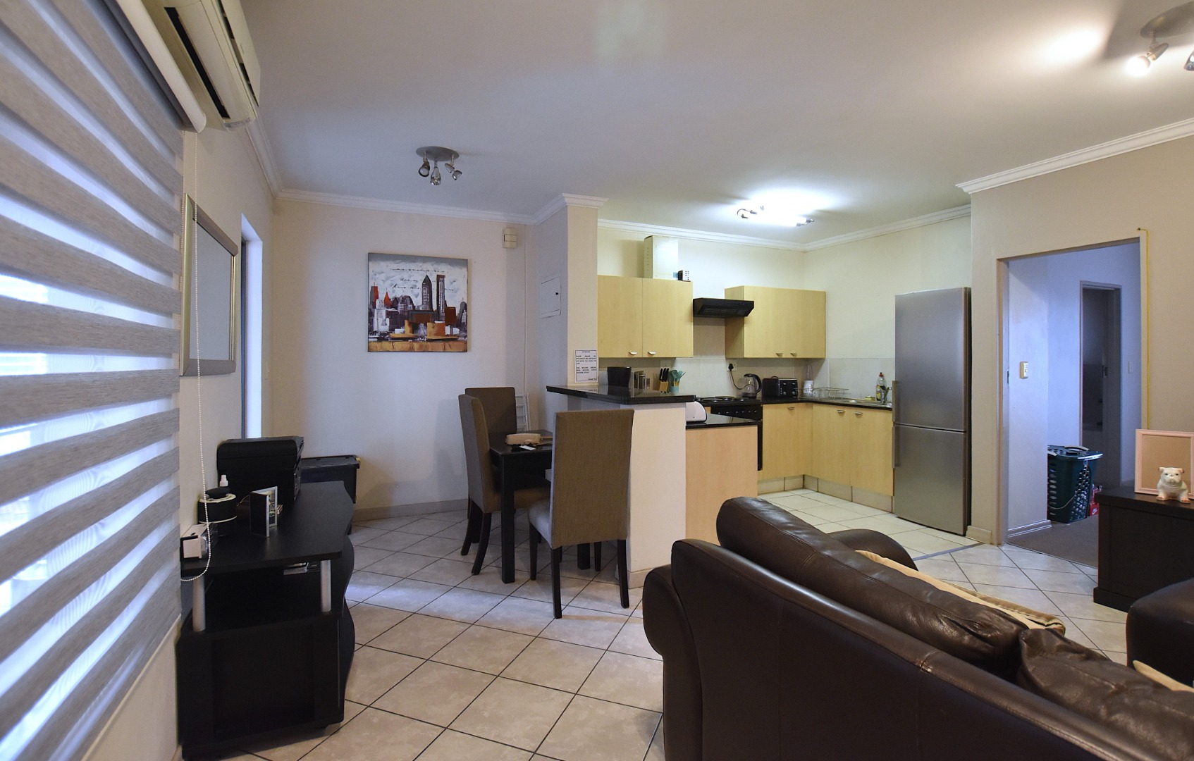 Security is paramount with 24-hour security and electric fencing within the complex, providing peace of mind. Fibre connectivity is available, catering to modern communication needs. This unit presents a neat and functional living environment, ideal for individuals or couples seeking a contemporary urban living in a prime location.