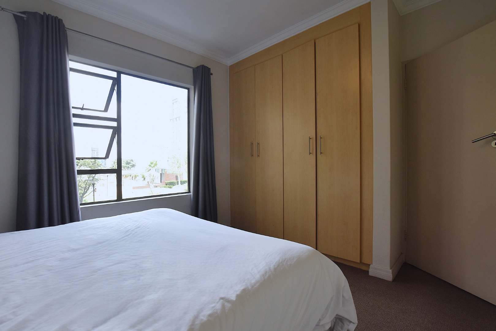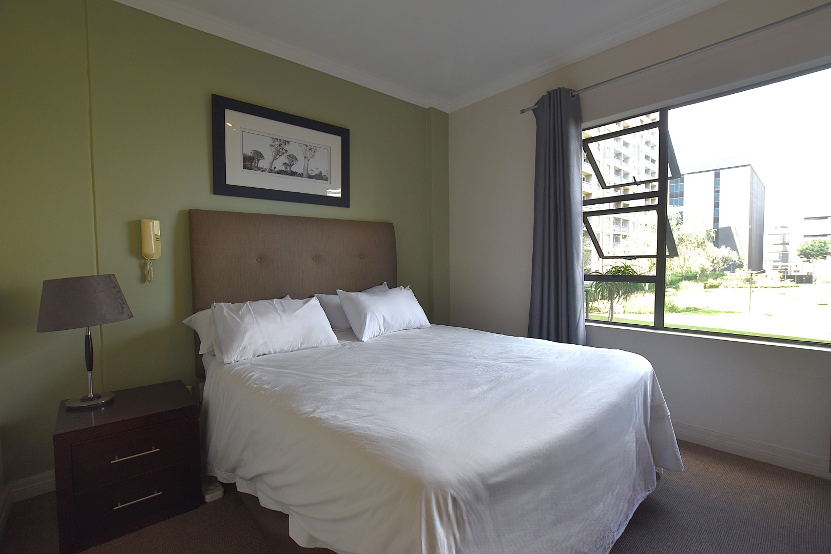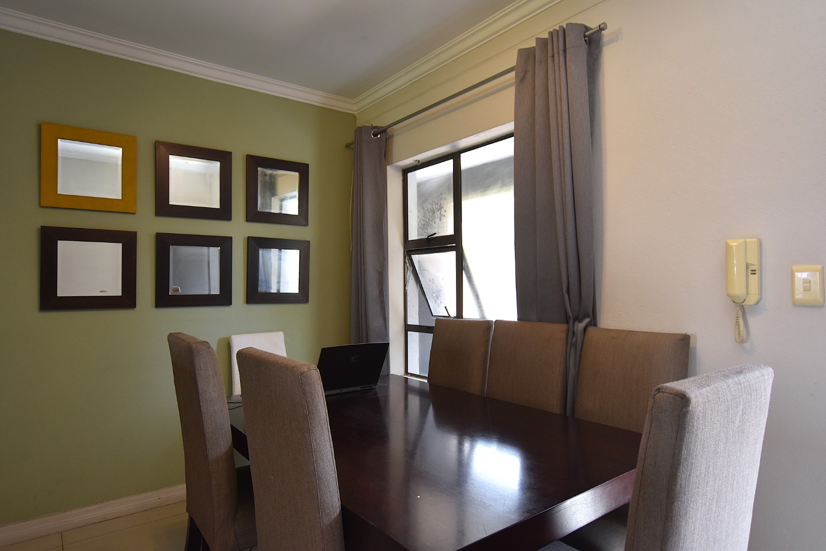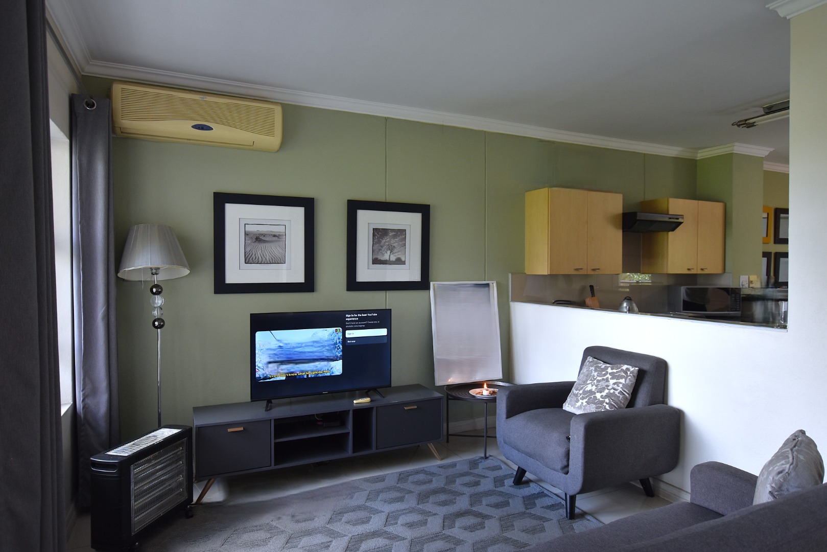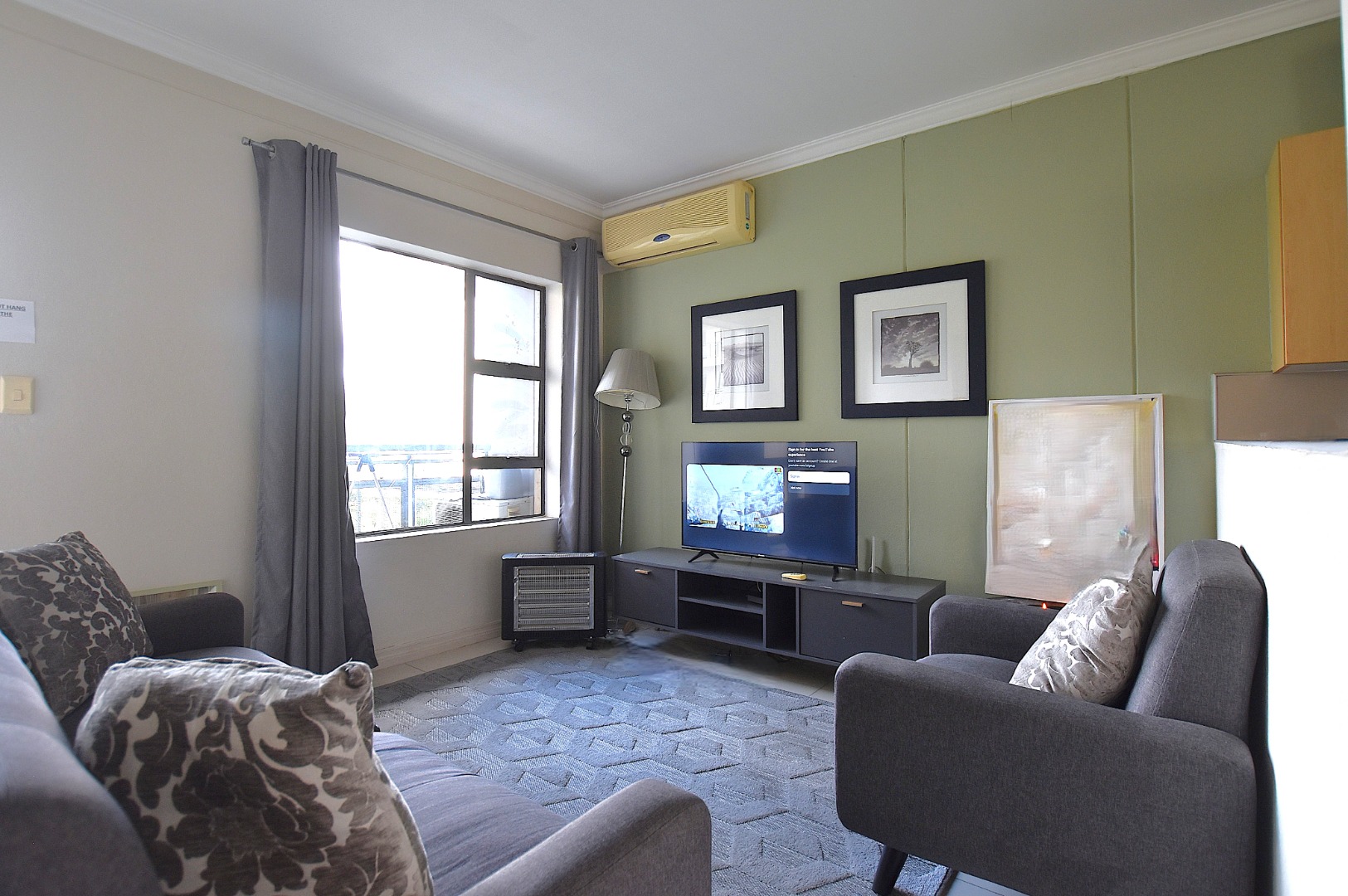 Discover modern living in this inviting 80 sqm apartment, ideally situated within a contemporary building in Morningside, Sandton. The residence boasts a sleek, open-plan design, seamlessly connecting the lounge, dining area, and kitchen. Natural light floods the living spaces, enhanced by a tasteful grey and green colour palette and modern furnishings. The functional kitchen features light wood cabinetry, dark countertops, with space for all appliances, flowing into a dining area .