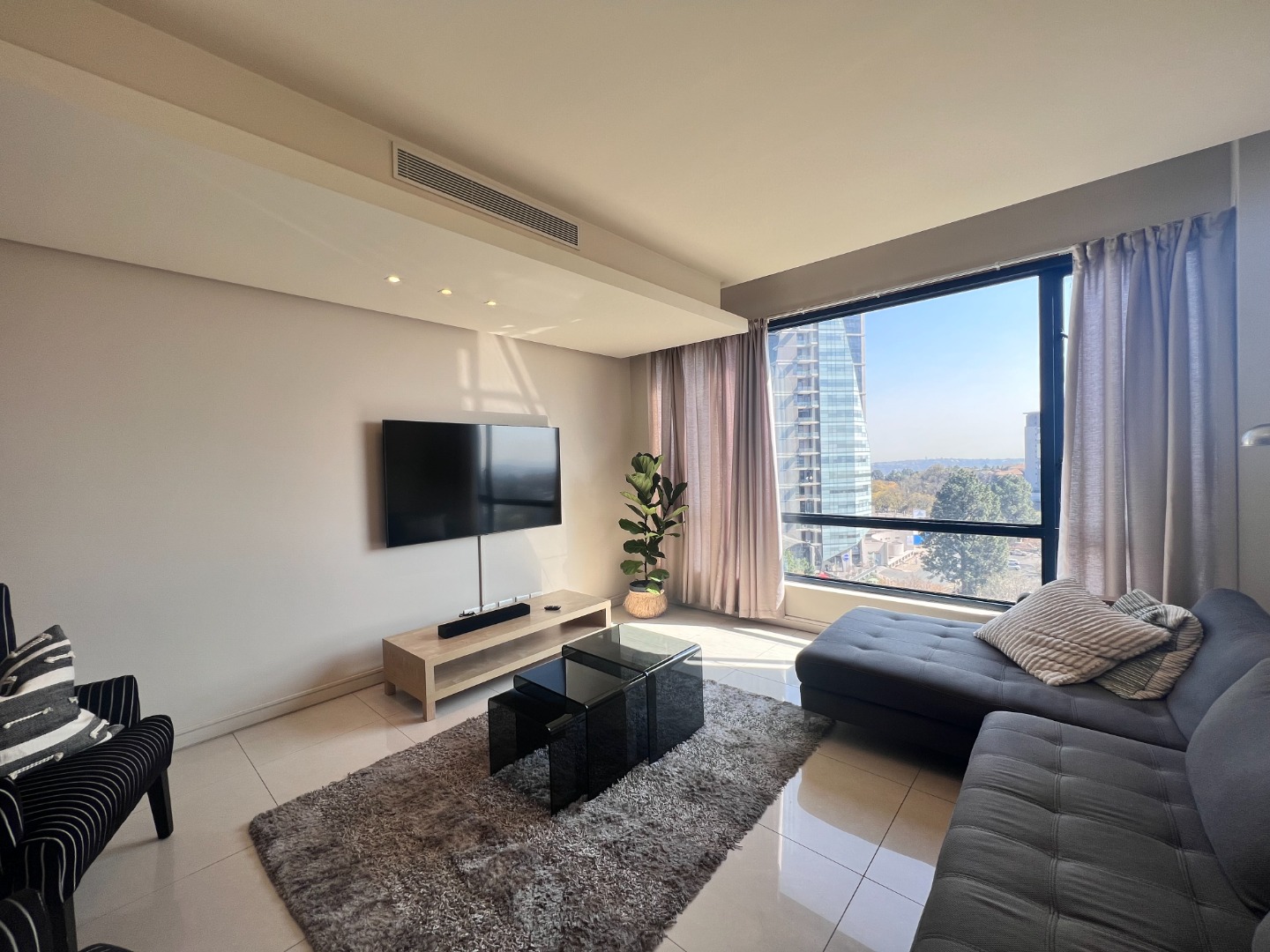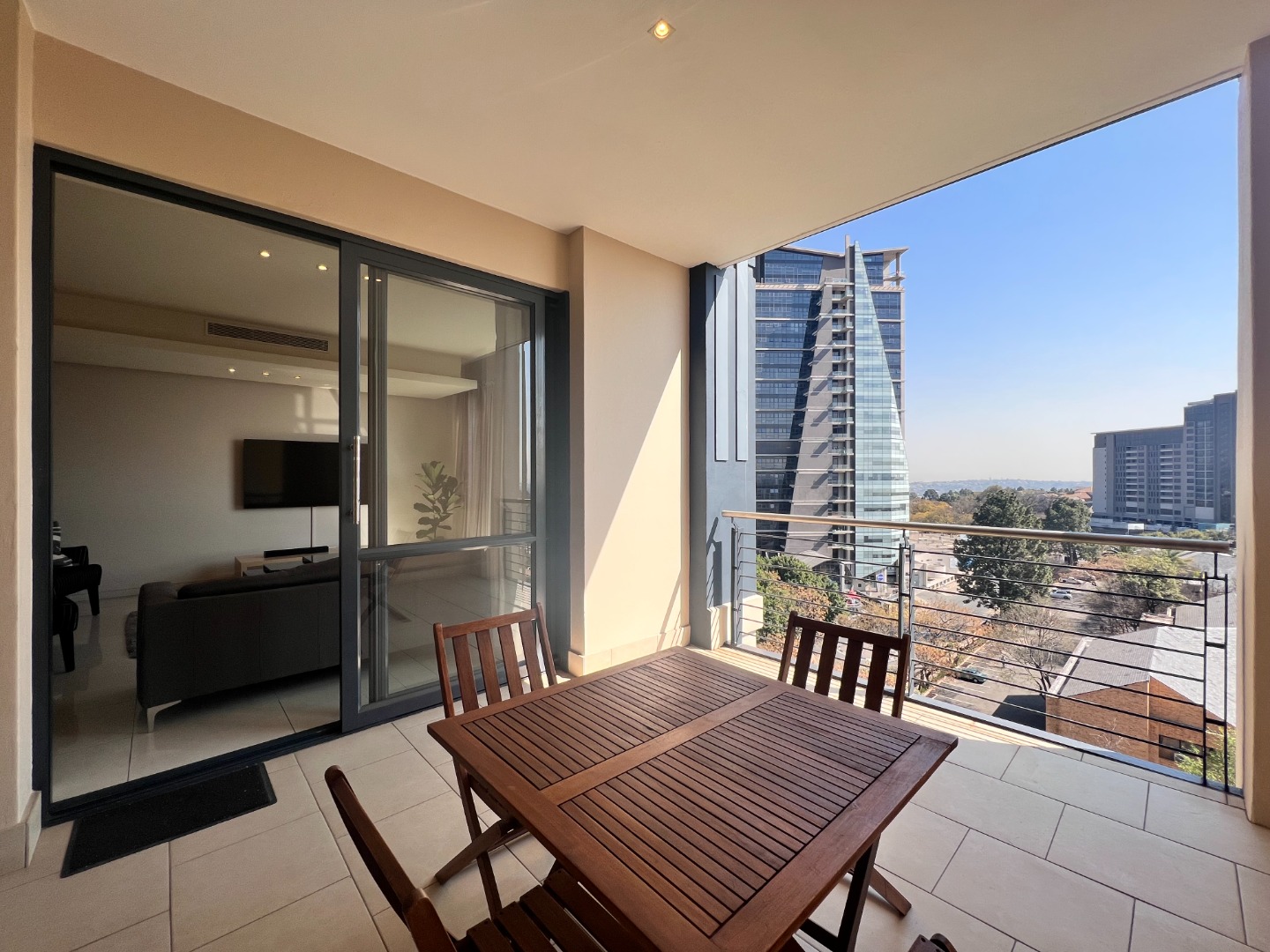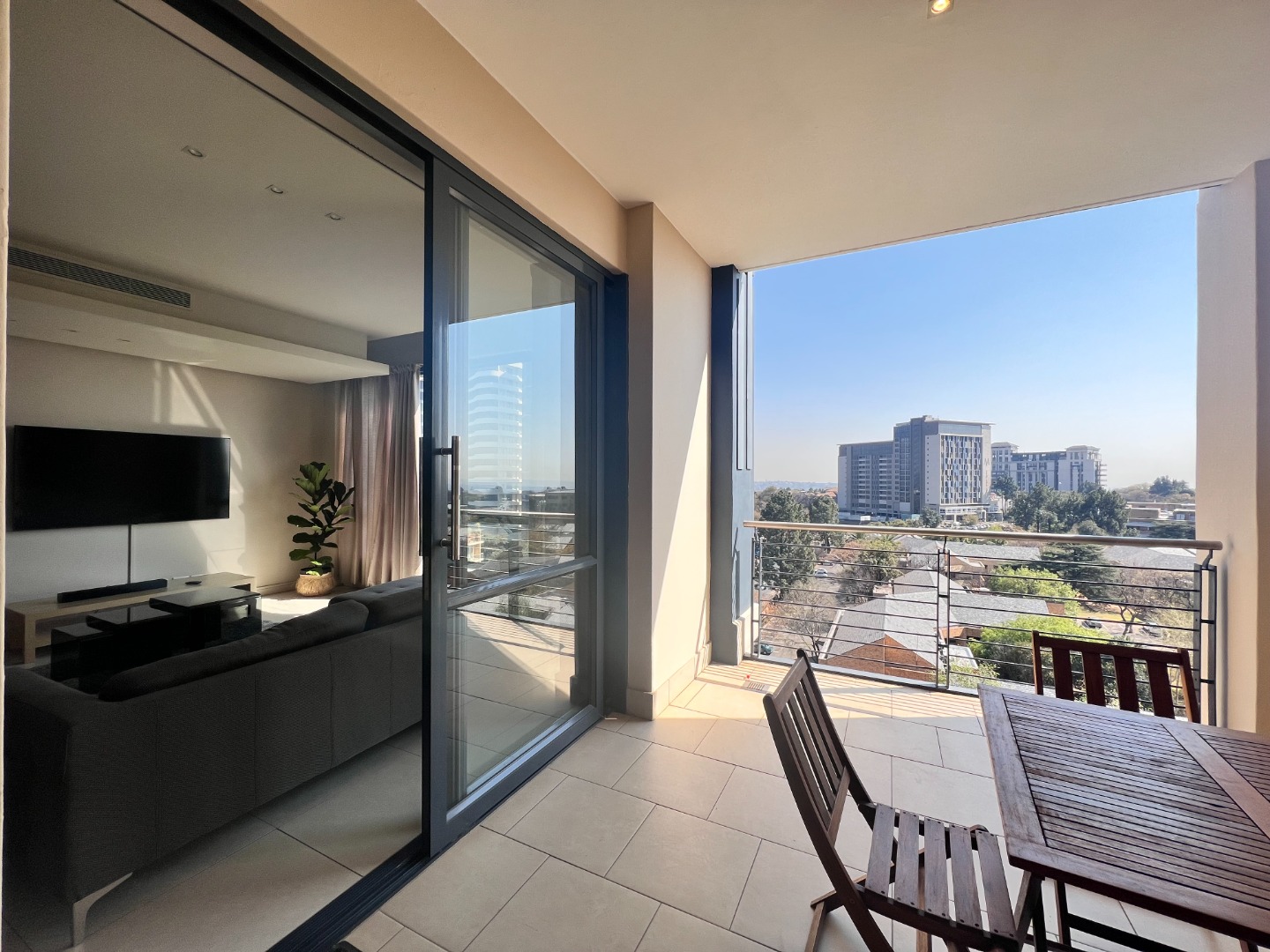 Deluxe and elegant apartment – light, bright and airy open living areas opening to an entertainers covered patio and spectacular Sandton skyline views!
