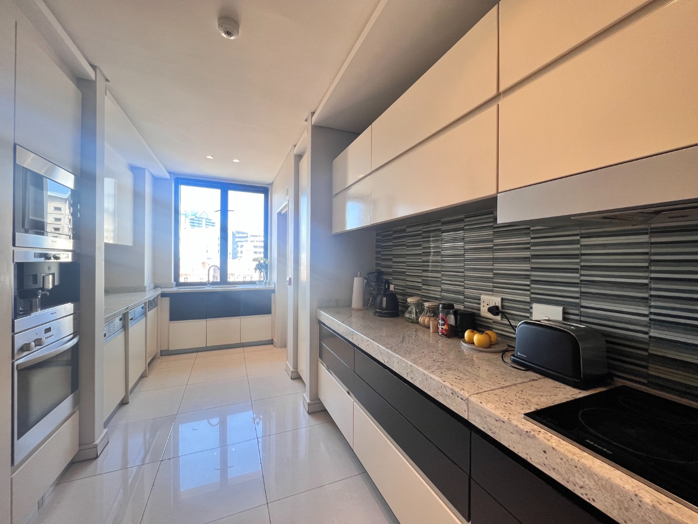 Designer Kitchen with integrated Miele appliances including coffee machine and microwave.