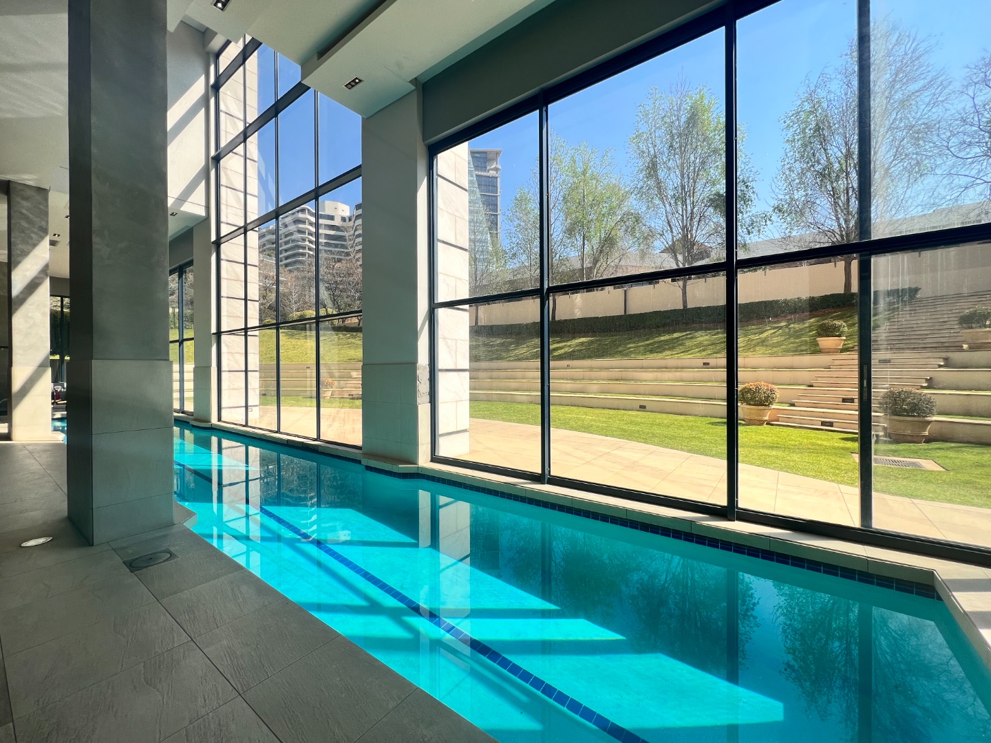 Deluxe and elegant apartment – light, bright and airy open living areas opening to an entertainers covered patio and spectacular Sandton skyline views!