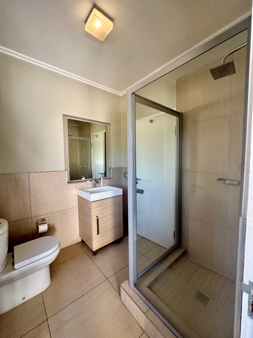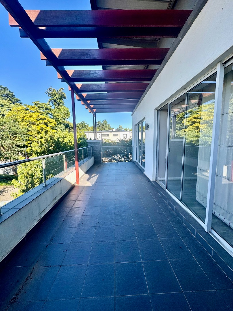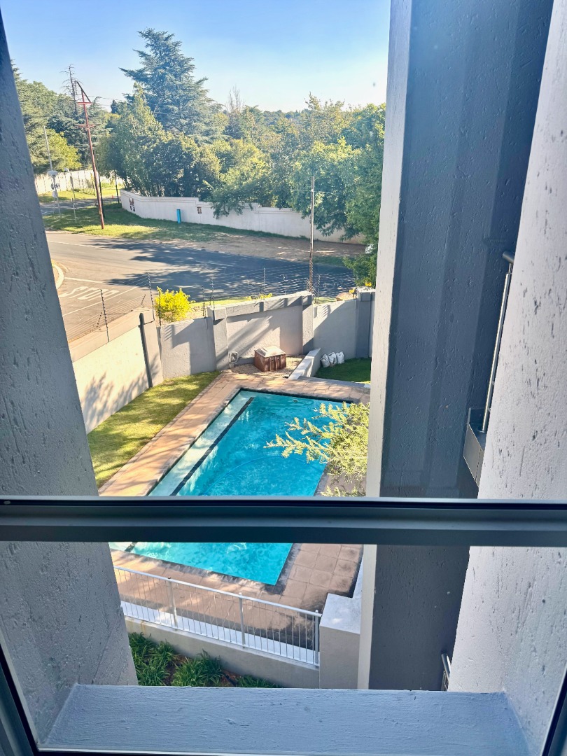 Step outside to the magnificent, spacious balcony, an entertainer's dream. Adorned with a charming pergola and a glass railing, it offers unobstructed scenic views, creating a picturesque backdrop for relaxation or al fresco dining. Residents also benefit from access to a communal swimming pool and two dedicated parking bays, enhancing the lifestyle offering. The complex provides paramount security with 24-hour surveillance, a security post, and controlled access, ensuring peace of mind in this vibrant metropolitan hub.