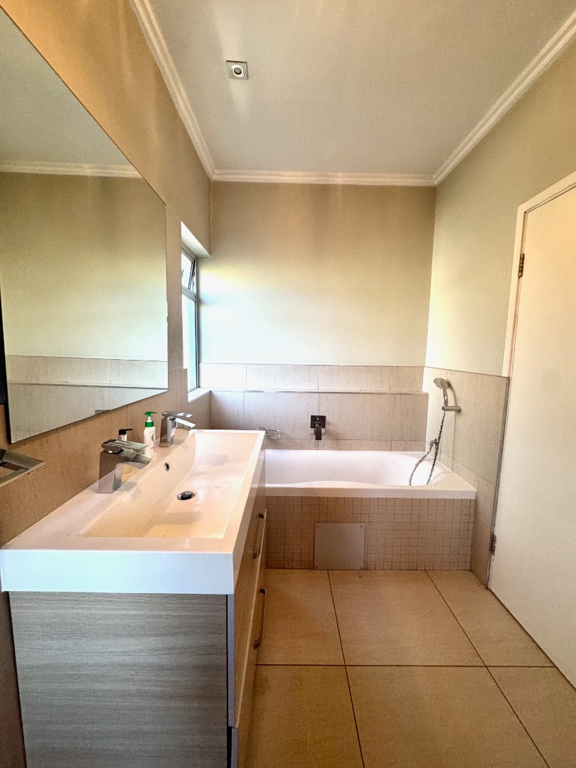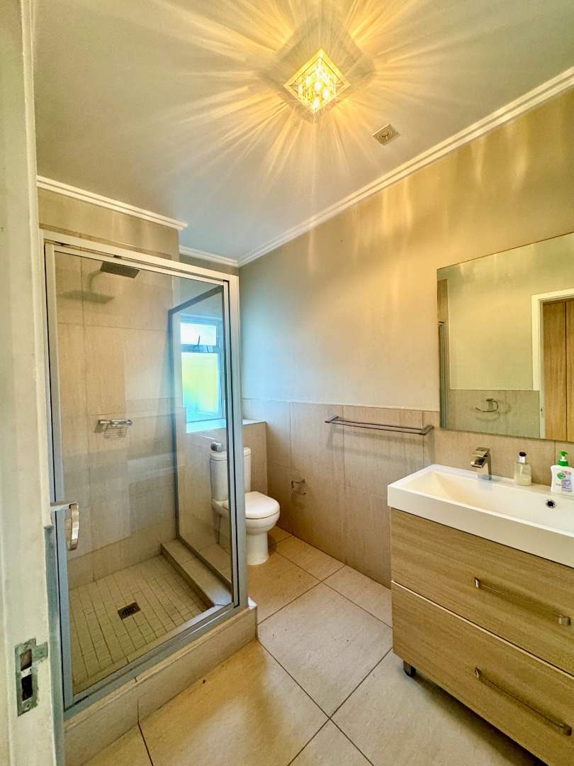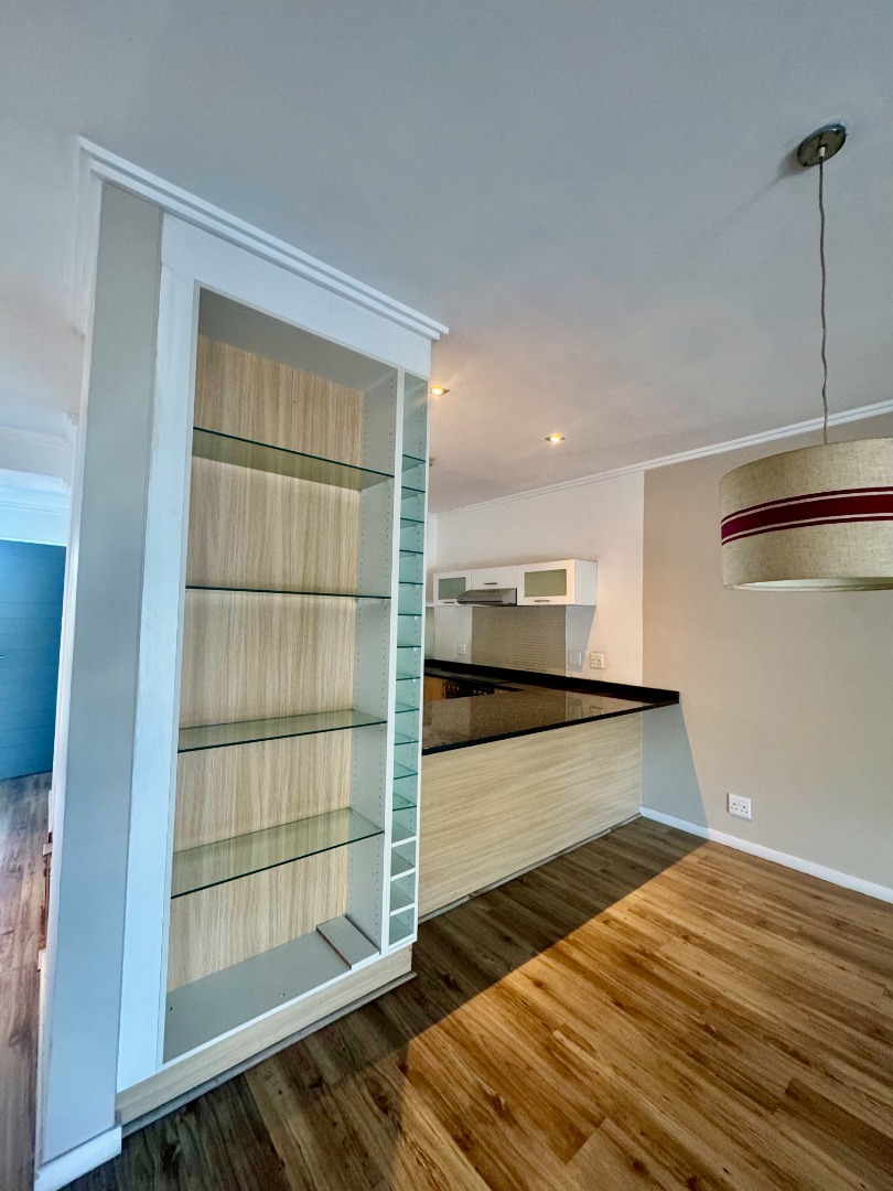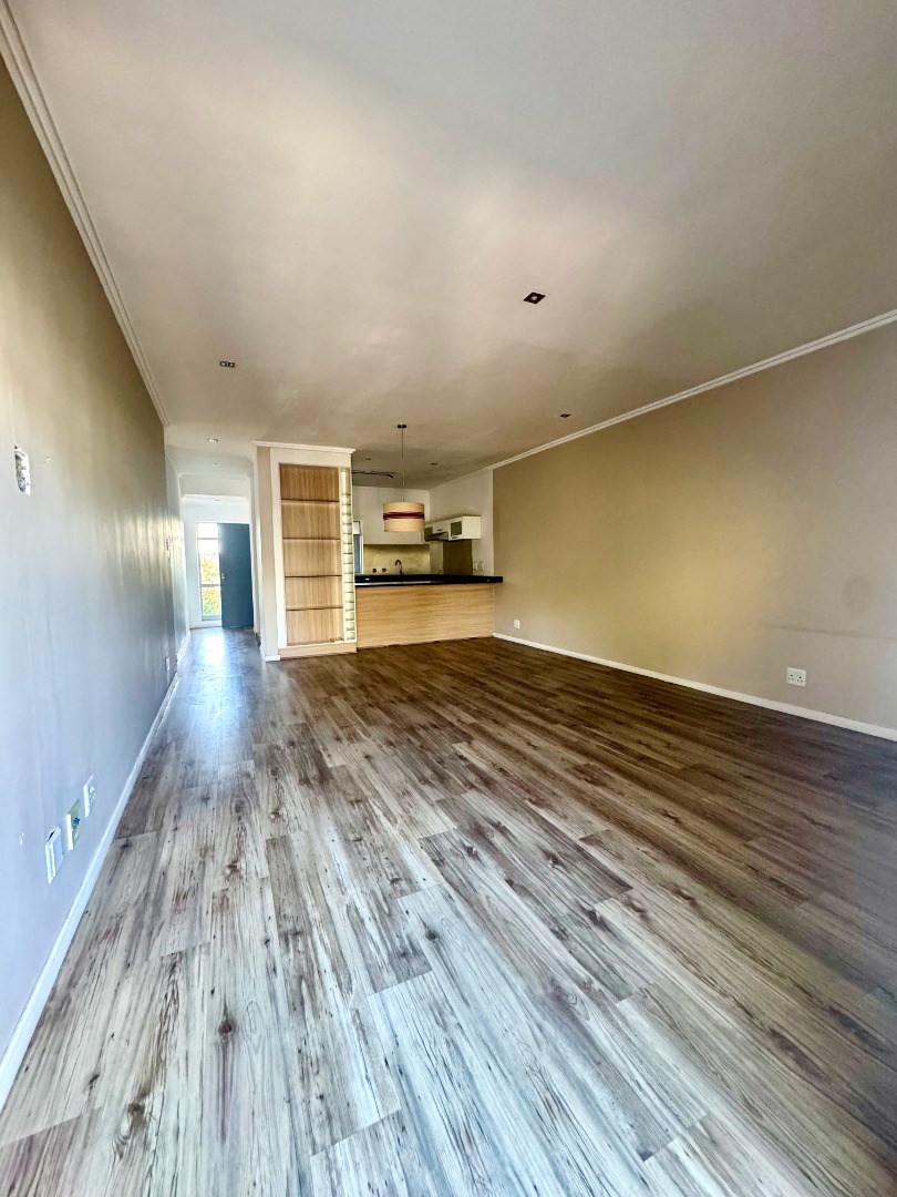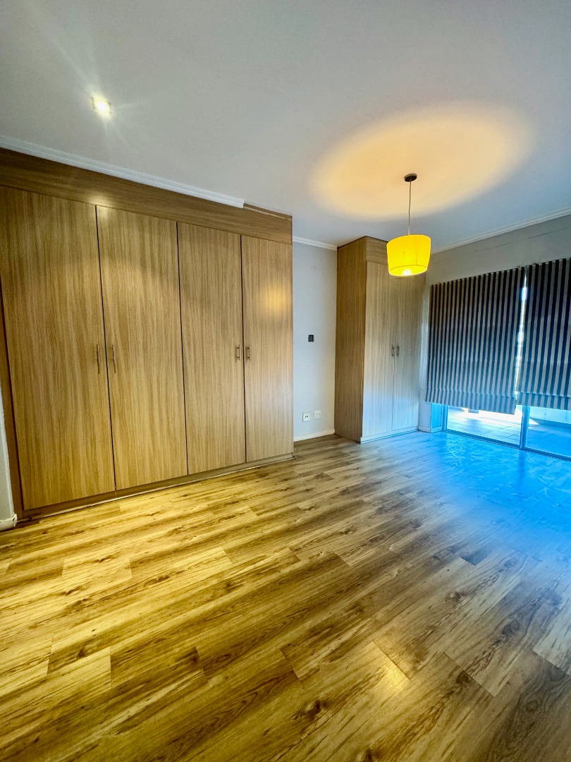 Discover an exquisite urban sanctuary within a prestigious security complex in Morningside, Sandton. This sophisticated 117 sqm residence, designed for discerning tastes, immediately captivates with its seamless open-plan living, enhanced by new-look wood laminate flooring, elegant crown molding, and a palette of neutral tones that invite personal expression. An inviting entrance hall ushers you into a spacious lounge and dining area, where recessed lighting casts a warm glow, and a large sliding door bathes the space in natural light, leading to an expansive outdoor haven.