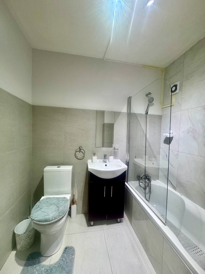 Both bedrooms are cozy and get plenty of natural light, making them peaceful retreats. One of them even has its own en-suite bathroom, which is a nice bonus! The two modern bathrooms are neatly tiled and come with a bath and overhead shower, along with contemporary vanity units. It’s all about easy living here, with everything you need right at your fingertips.