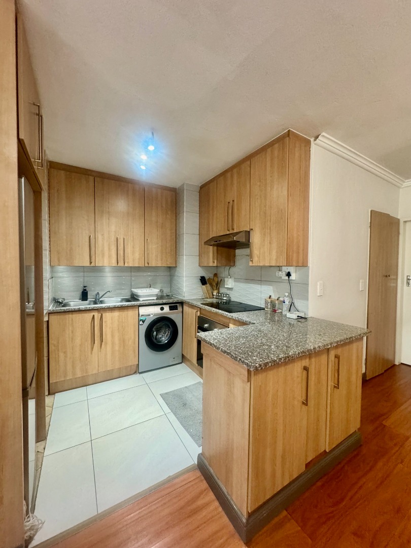 Come on in and discover this lovely 2-bedroom, 2-bathroom apartment nestled in a secure complex in Morningside, Sandton. It's a fantastic spot for anyone looking for a comfortable and convenient lifestyle. The open-plan living area is super inviting, featuring warm wood-look flooring and neutral walls that make it easy to add your personal touch. You'll love the compact, well-equipped kitchen, which boasts light wood-look cabinetry, sleek granite-style countertops, and an integrated washing machine. Plus, there's a built-in hob and oven, and a handy peninsula that doubles as a breakfast bar – perfect for quick meals or catching up with friends.