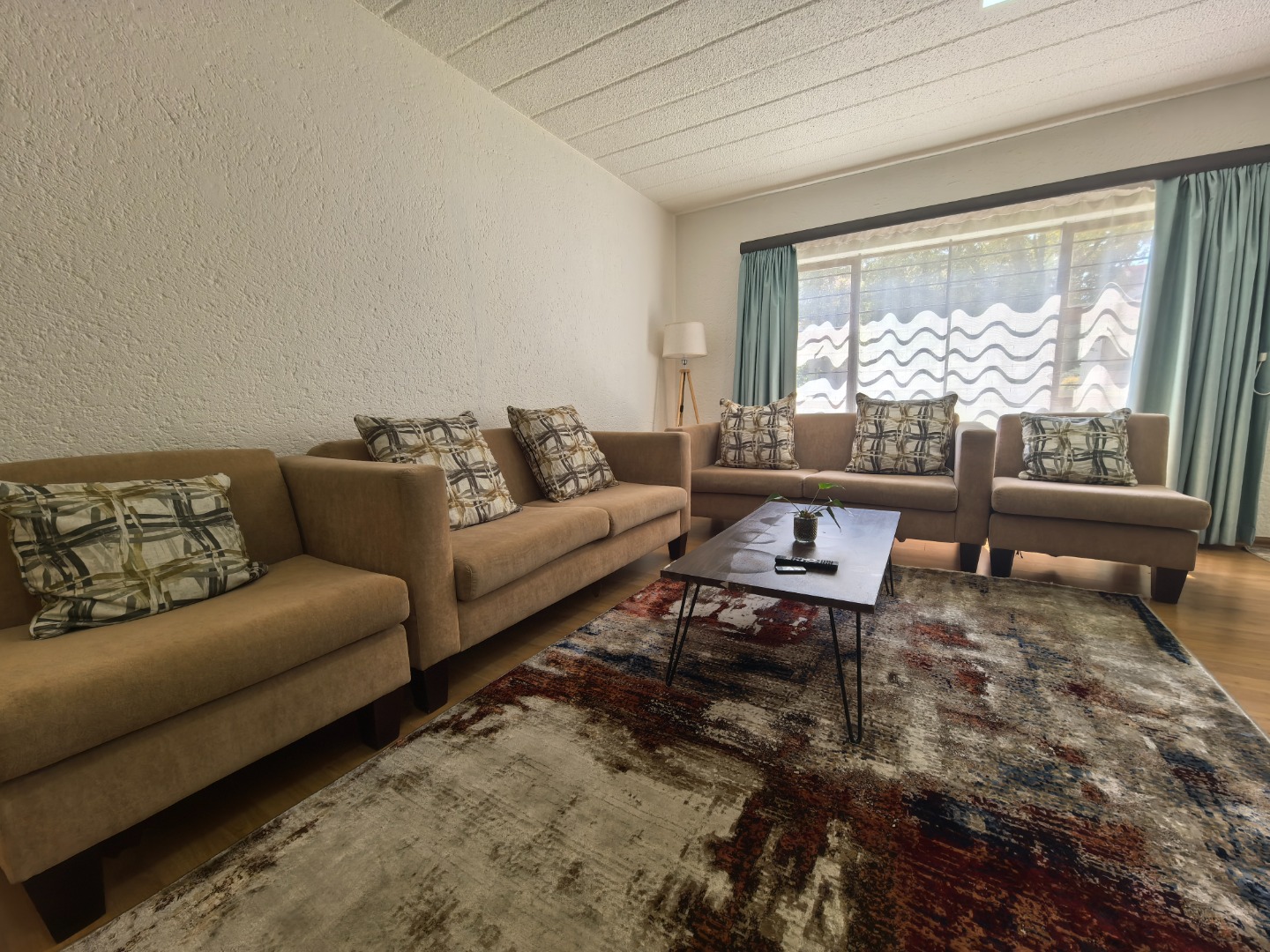 The home comprises three comfortable bedrooms, with the main bedroom featuring an en-suite bathroom. A second well-appointed bathroom serves the remaining rooms, all benefiting from natural light and practical built-in wardrobes. Residents will appreciate the development's lifestyle amenities, including a communal swimming pool and a club house, complemented by a private garden space. Security is paramount, with 24-hour security, electric fencing, and controlled access gates providing peace of mind. The property is fibre-ready and includes air conditioning for enhanced comfort, along with two dedicated parking bays. Pets are allowed.
