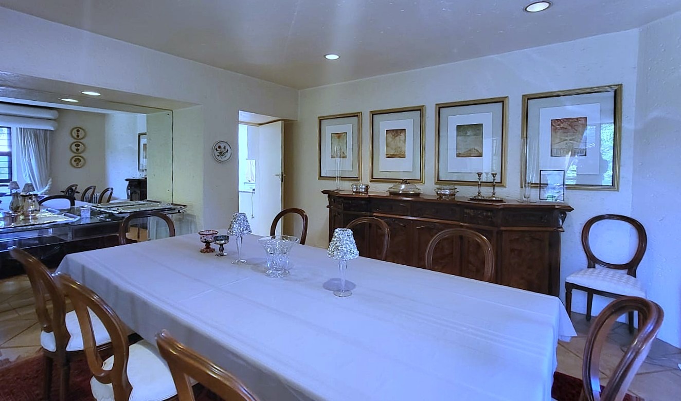 Nestled within a secure gated community in the sought-after Morningside suburb of Sandton, this expansive residence offers a tranquil lifestyle. The interior boasts a functional layout featuring two lounges, a dedicated dining room, and a family/TV room, providing ample space for relaxation and entertaining. A well-appointed kitchen includes a scullery, pantry and breakfast nook, while a separate study offers a quiet workspace.