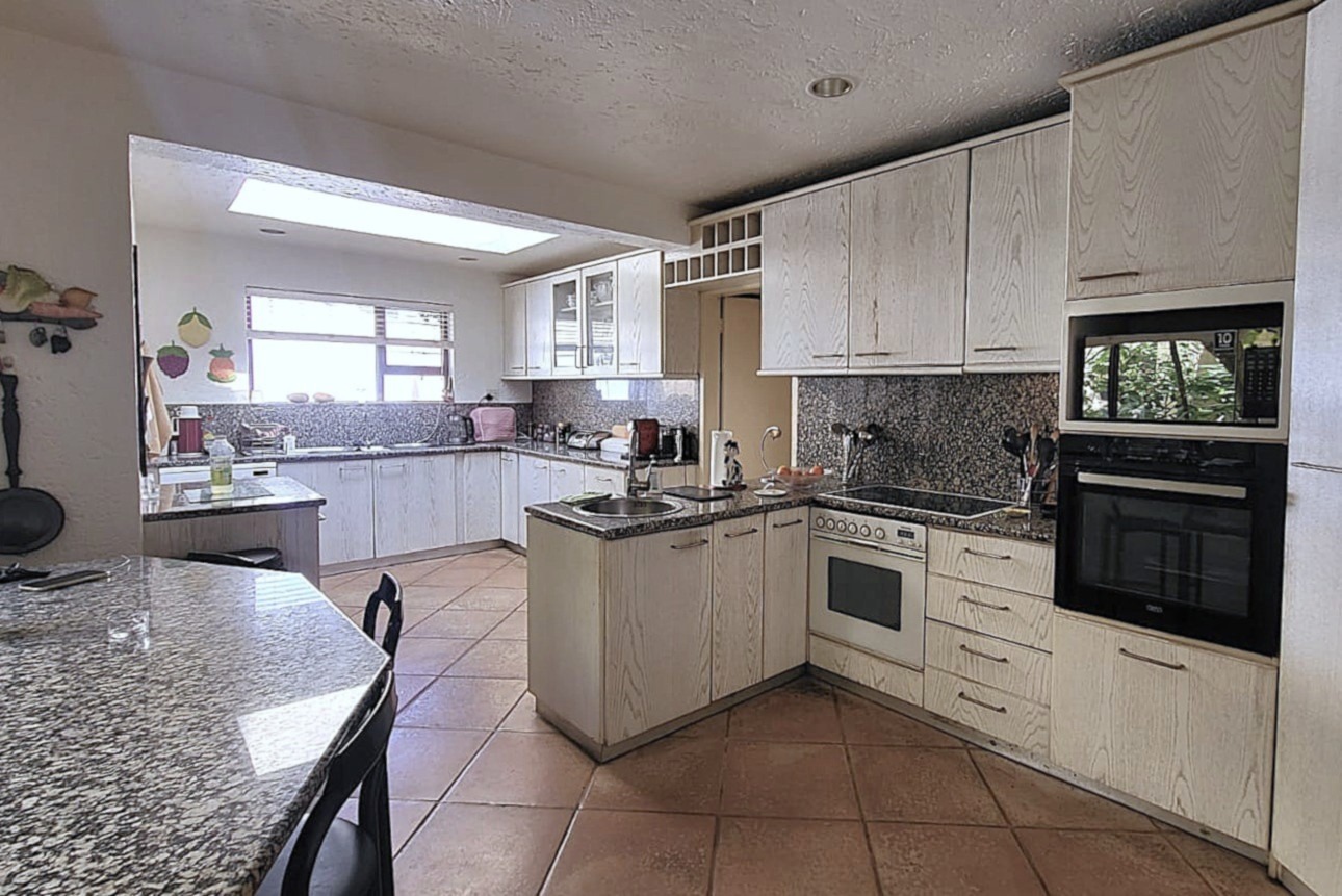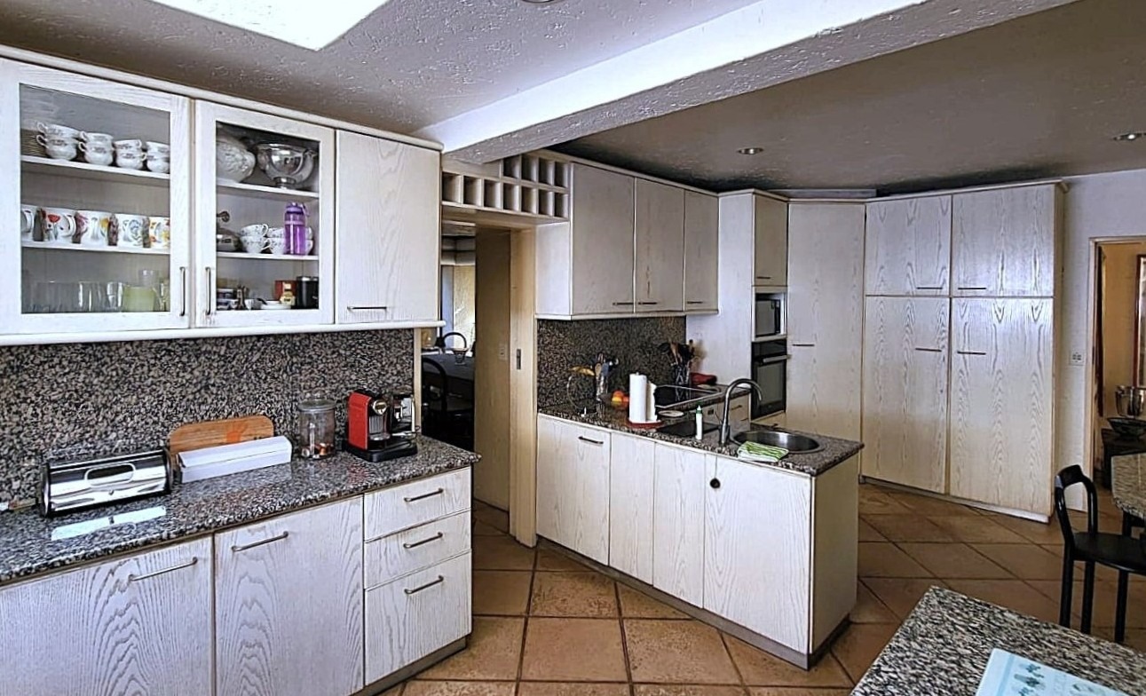 Parking is generous with a double garage, one covered parking bay and four additional parking spaces, alongside staff quarters.