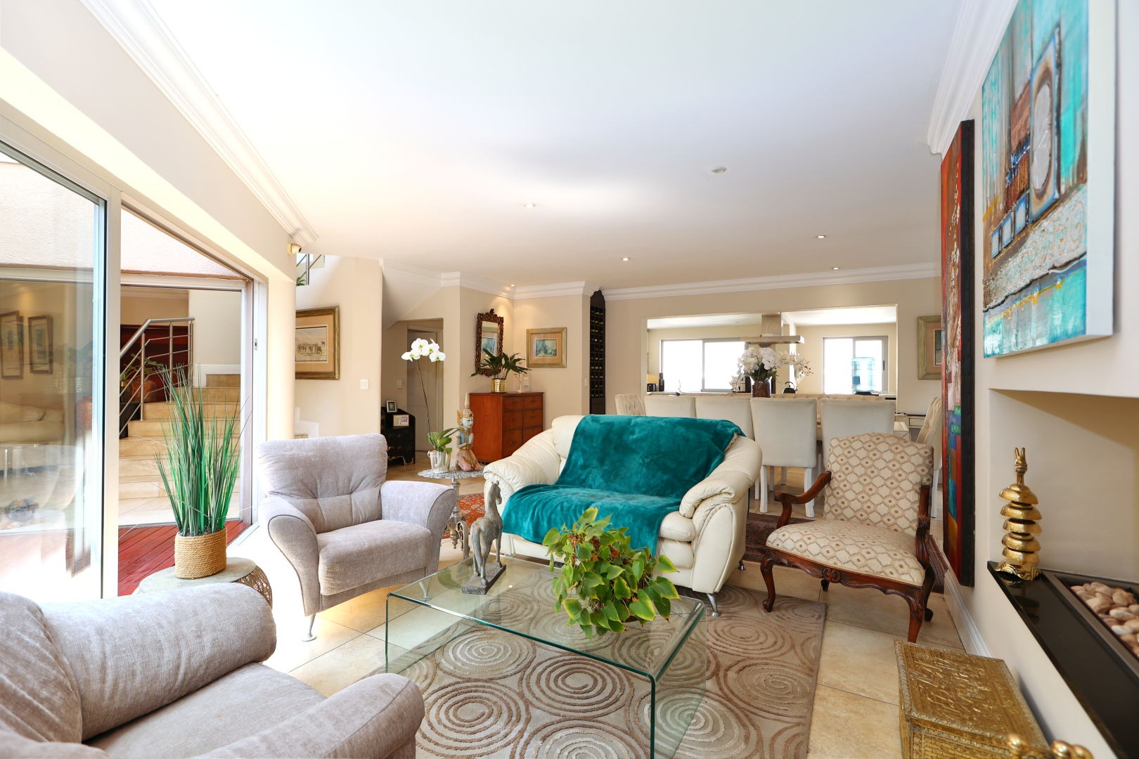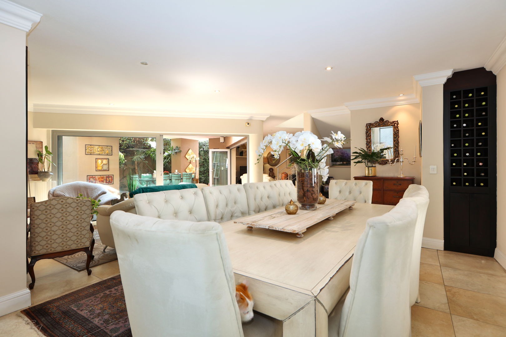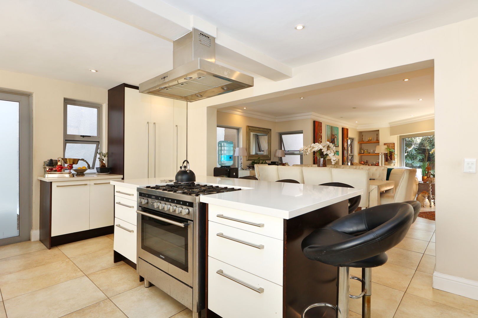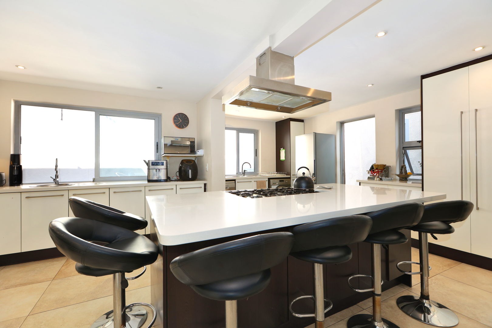 Discover this modern 3-bedroom, 2.5-bathroom home situated within a secure complex in Morningside, Sandton. The property boasts excellent kerb appeal with its contemporary design and a welcoming entrance hall featuring a modern tiled staircase with stainless steel railing. Inside, the open-plan living areas, including two lounges and a dining room, flow seamlessly, enhanced by large sliding doors that invite natural light and connect to the outdoors. The modern kitchen is a highlight, equipped with a large island, integrated stovetop, stainless steel appliances, contemporary cabinetry, and a pantry, perfect for culinary enthusiasts. Step outside to a private oasis featuring a dipping pool, wooden deck, and an intimate outdoor dining area amidst lush greenery, ideal for relaxation and entertaining. The home also includes a balcony and two garages. For comfort, air conditioning and a fireplace are provided, alongside a guest toilet and a dedicated family TV room. Security is paramount with 24-hour security, an access gate, security post, and electric fencing, ensuring peace of mind. This home is also equipped for sustainable living with fibre connectivity, a battery inverter, solar panels, and water tanks. Situated in the sought-after Morningside suburb of Sandton, this property offers convenient access to urban amenities within a secure complex setting. Key Features: * 3 Bedrooms, 2.5 Bathrooms * Open-Plan Living Areas * Modern Kitchen with Pantry * Private Dipping Pool & Deck * 2 Garages * Air Conditioning & Fireplace * Fibre Ready * Solar Panels & Inverter * 24-Hour Security Complex * Pets Allowed