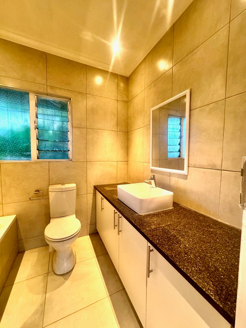 Security is paramount within this complex, featuring 24-hour security at Dare Road, an access gate, and a security post. The property itself is fortified with burglar bars and security gates on external access points. Additional amenities include domestic rooms and water tanks, contributing to the property's functionality and sustainability. Residents also benefit from access to a club house and tennis court and swimming pool within the complex.