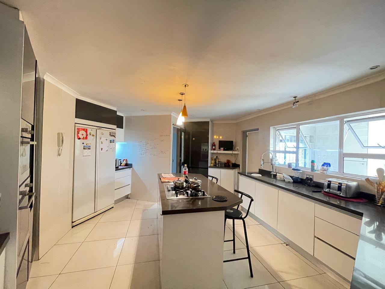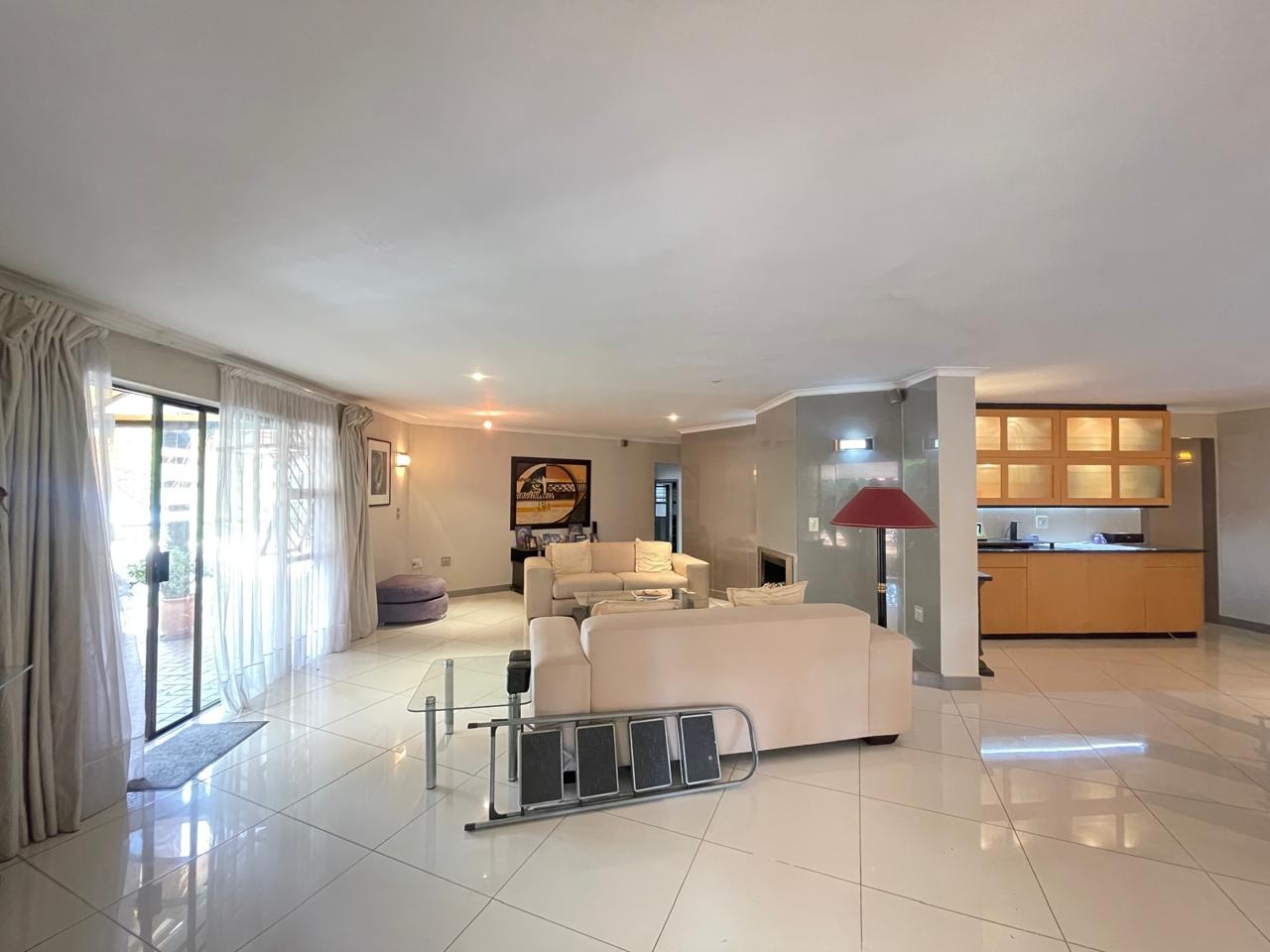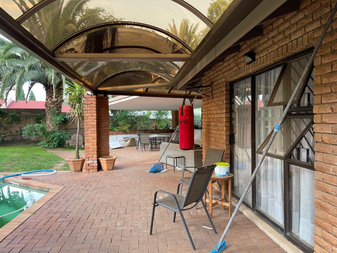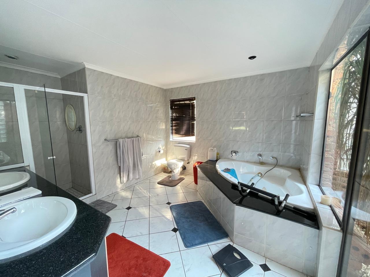 Set in a highly secure and peaceful boomed-off neighborhood, this exceptional home offers an abundance of space, comfort, and elegant indoor-outdoor living. Upon entering, you are welcomed by a spacious open-plan lounge, dining, and reception area that forms the heart of the home. The east wing features three generously sized bedrooms with ample built-in cupboards, serviced by two well-appointed bathrooms. A large, well-equipped kitchen with extensive cupboard space and a separate scullery completes this wing, ideal for comfortable family living.
