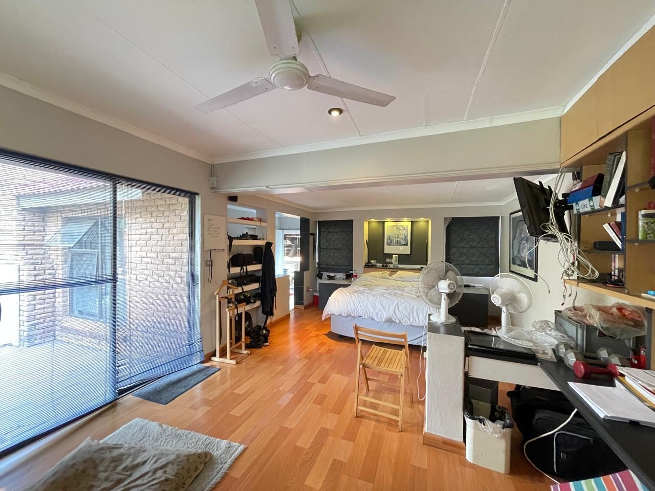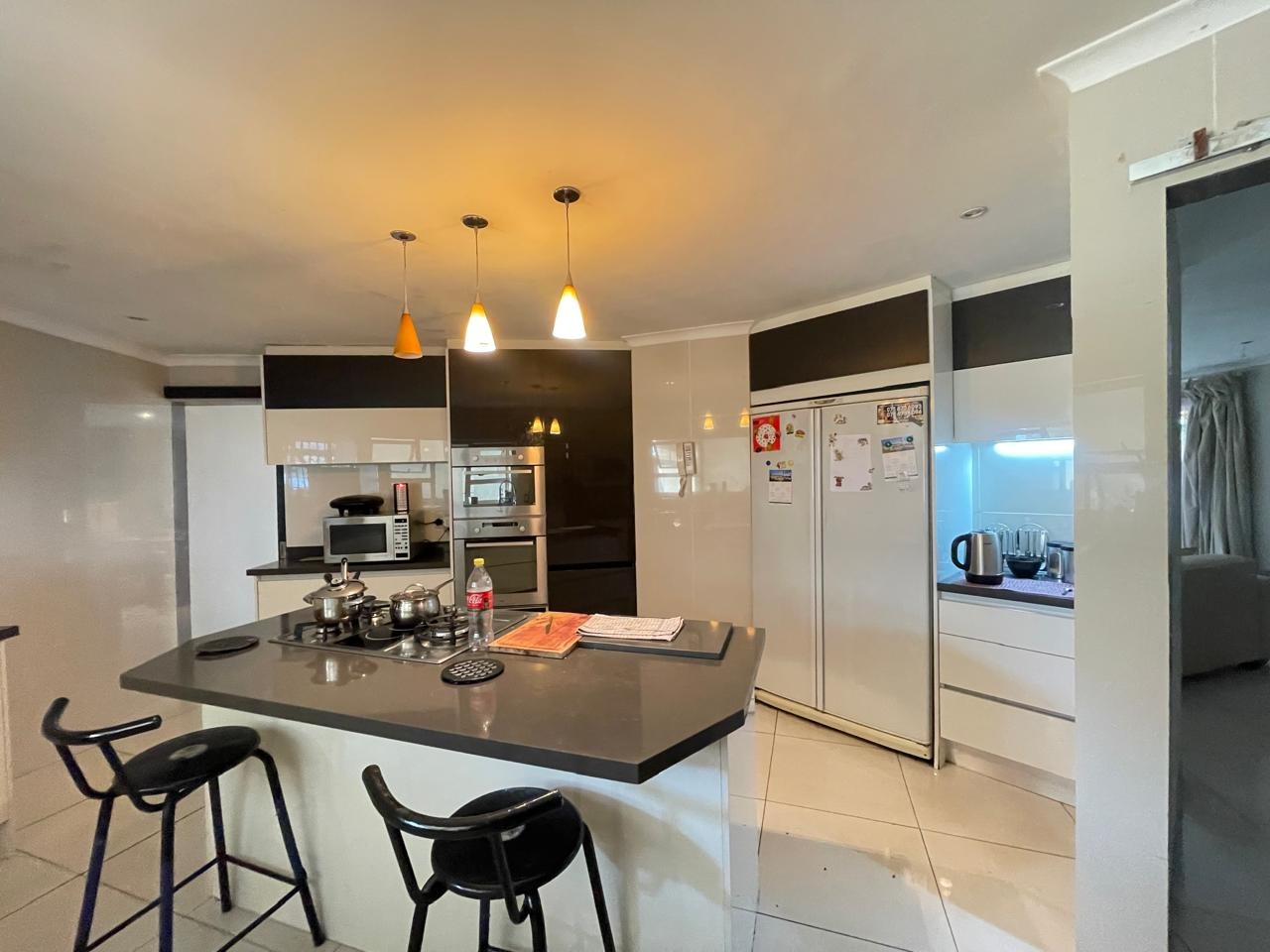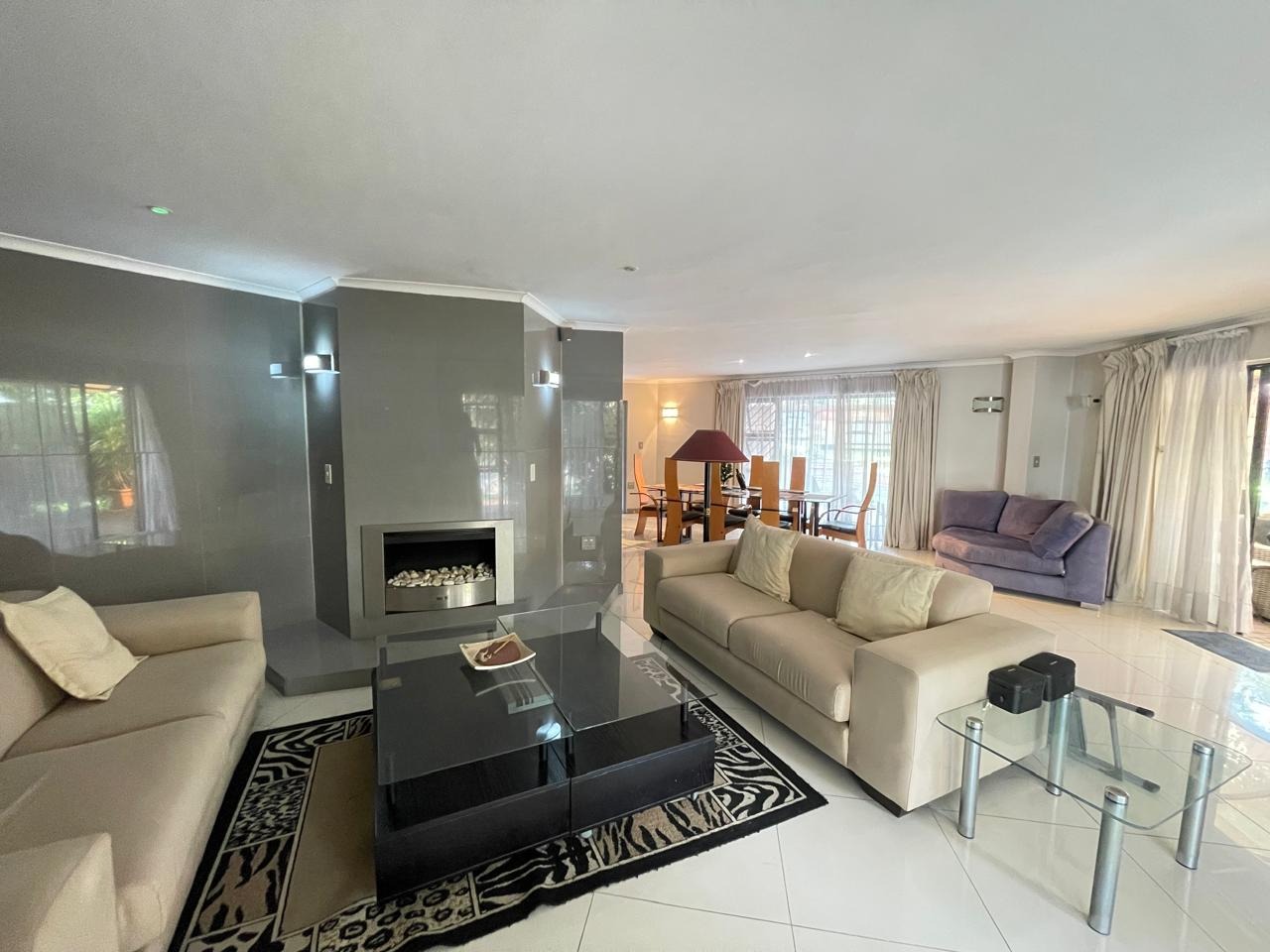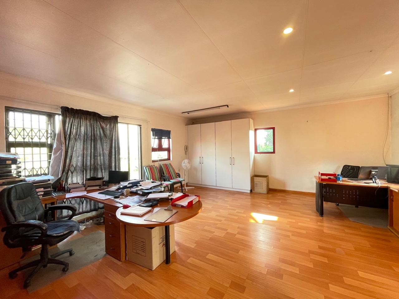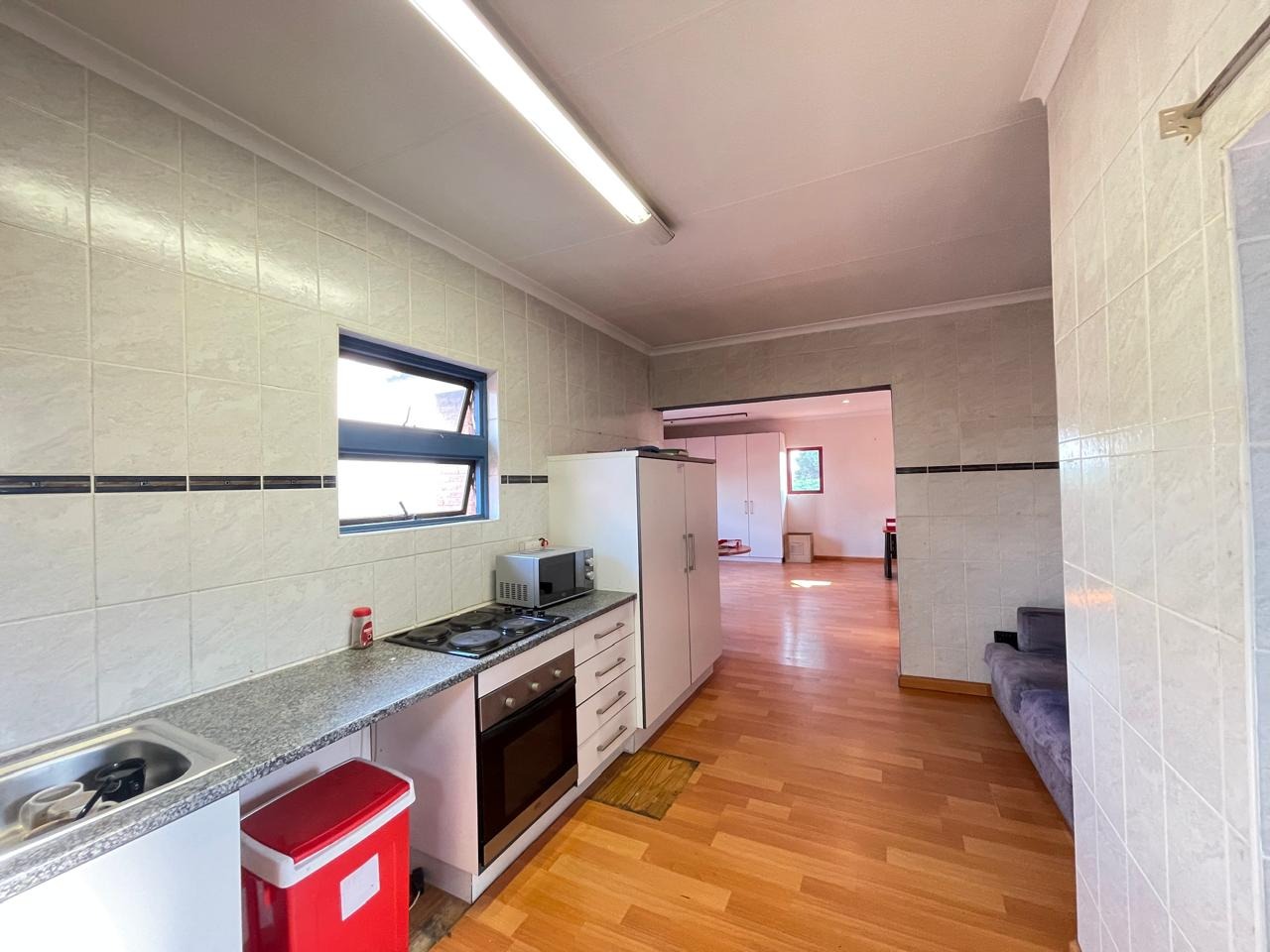 Set in a highly secure and peaceful boomed-off neighborhood, this exceptional home offers an abundance of space, comfort, and elegant indoor-outdoor living. Upon entering, you are welcomed by a spacious open-plan lounge, dining, and reception area that forms the heart of the home. The east wing features three generously sized bedrooms with ample built-in cupboards, serviced by two well-appointed bathrooms. A large, well-equipped kitchen with extensive cupboard space and a separate scullery completes this wing, ideal for comfortable family living.