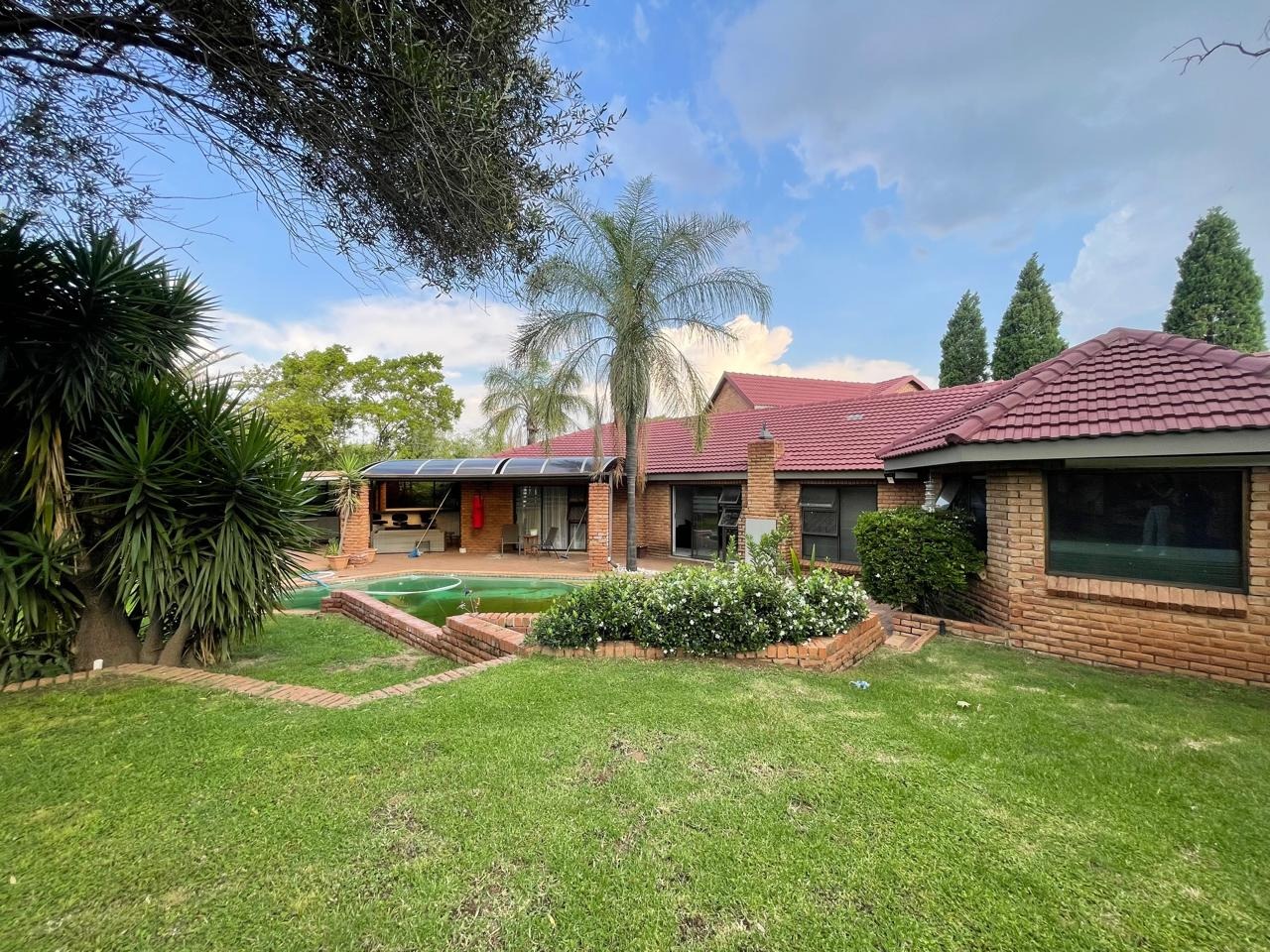 The outdoor area is designed for entertainment, featuring a swimming pool, a built-in braai area, and a beautifully maintained garden — all set in a tranquil environment filled with birdsong. The property offers excellent parking with double garages, five covered parking bays, and ample additional yard space. A self-contained cottage above the garage, with its own private entrance, offers a spacious open-plan room, bathroom with shower, a fully functional kitchen, and a balcony with stunning views. Conveniently located close to major roads, shopping centres, medical facilities, excellent schools, and other essential amenities, this home perfectly combines security, space, and lifestyle convenience.