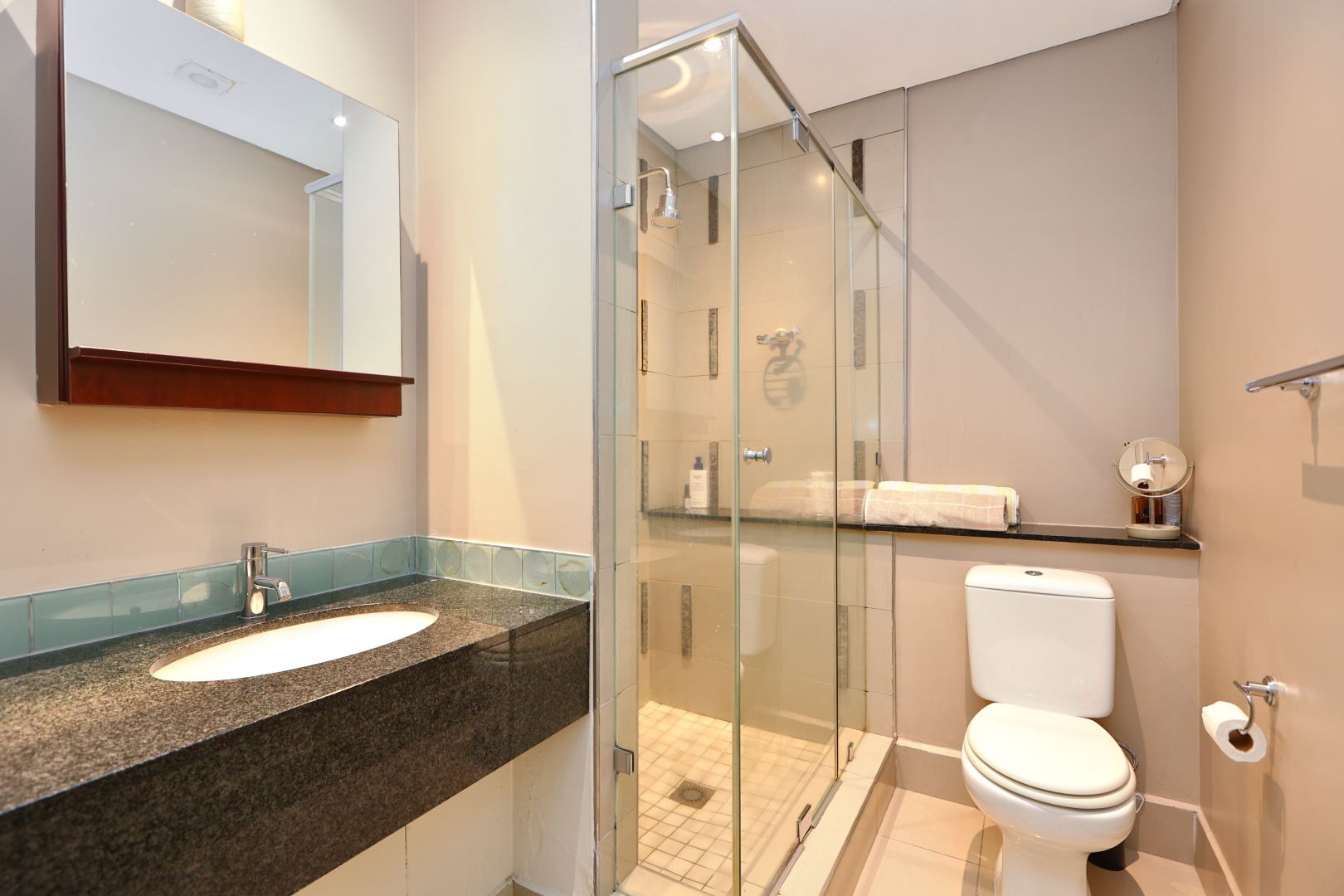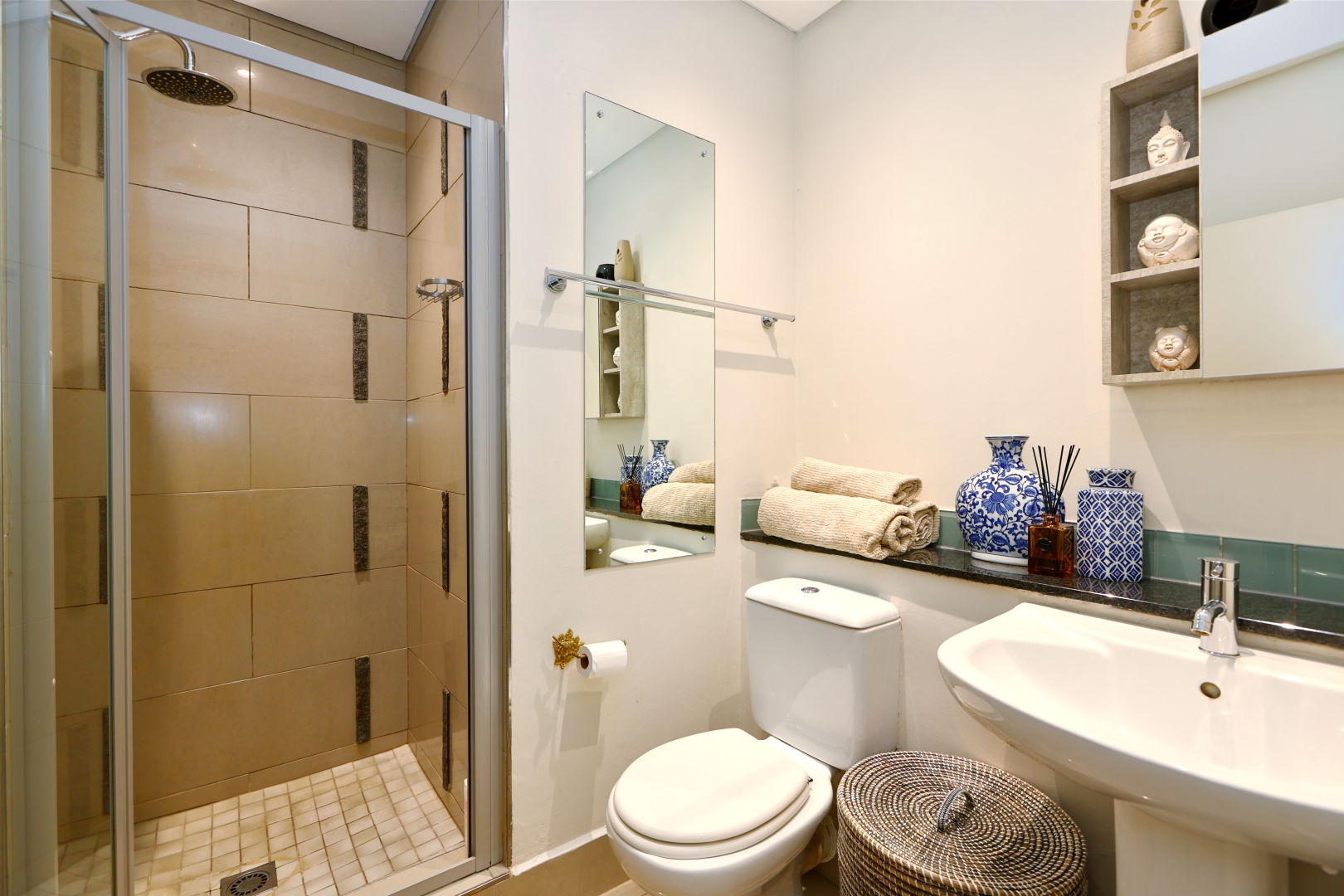 The property boasts two serene bedrooms, each a private sanctuary designed for ultimate comfort. The master suite offers generous built-in wardrobes and direct access to a private balcony, providing a tranquil retreat with verdant views. Complementing these are two well-appointed bathrooms, showcasing a double vanity with granite, a separate shower, and a luxurious bathtub, promising a spa-like experience.