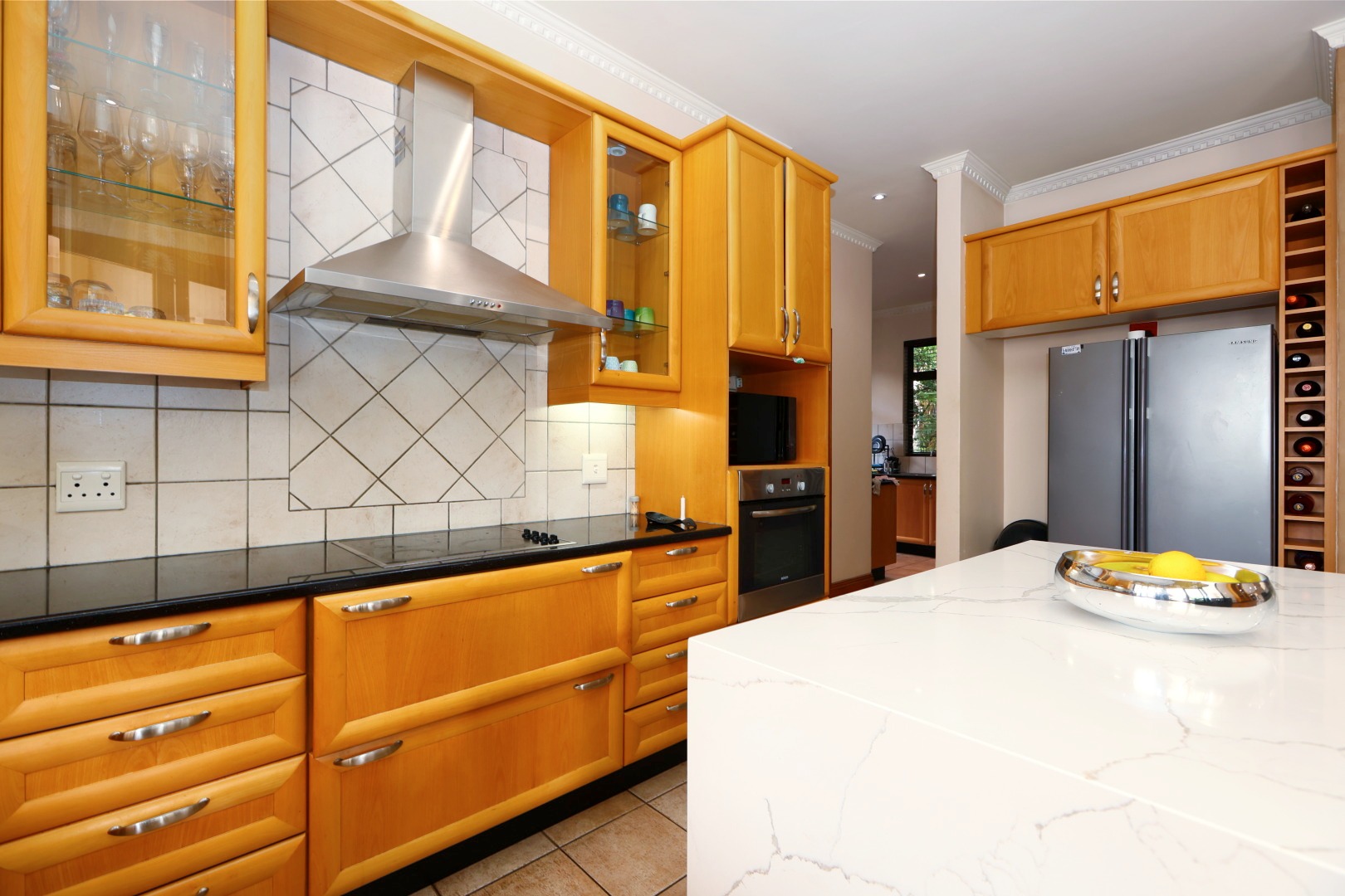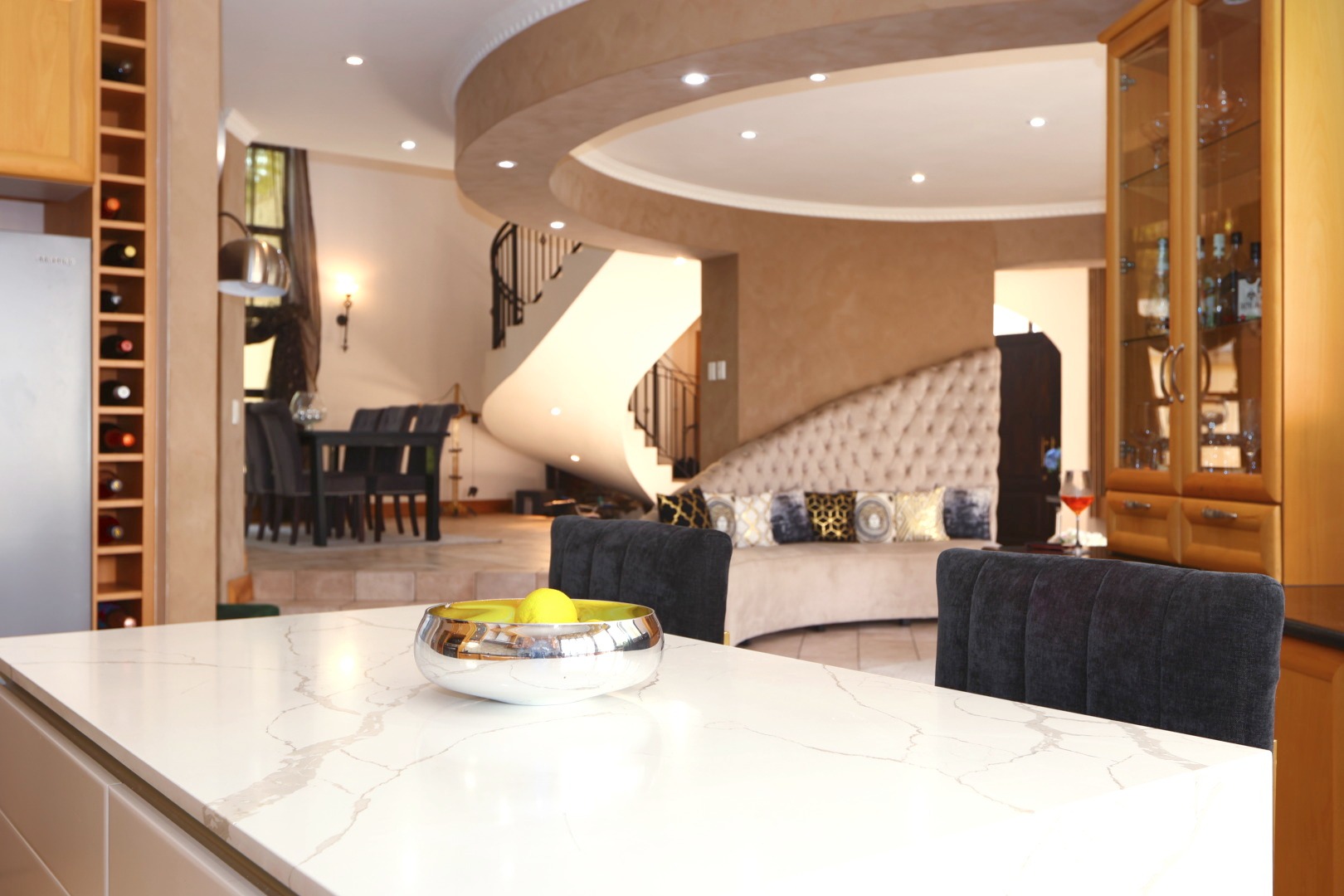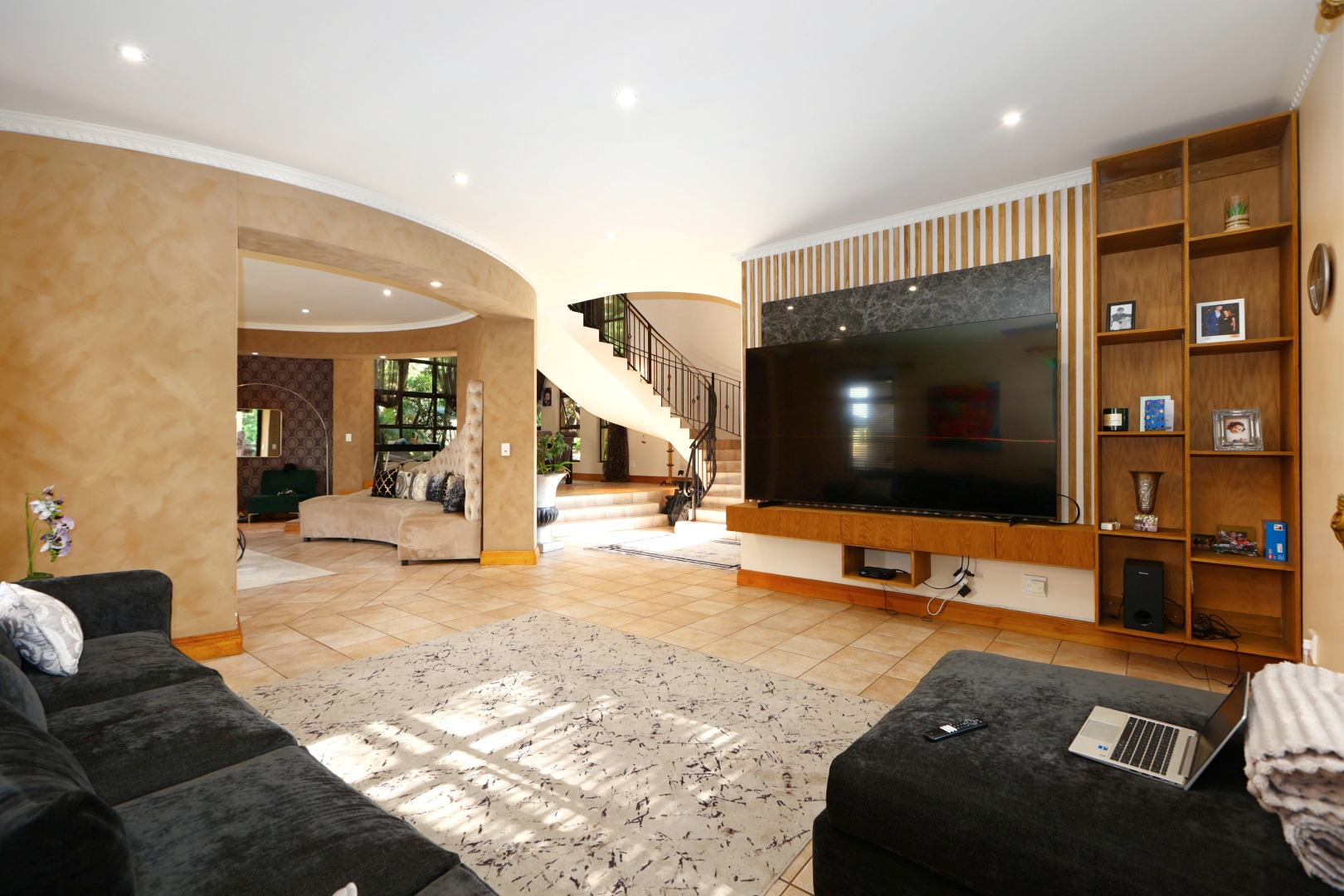 At the heart of the home, a beautiful reception area leads effortlessly onto a covered entertainment space, complete with built-in braai facilities, perfect for hosting unforgettable gatherings. This area overlooks a sparkling pool and meticulously landscaped, pet-friendly gardens, giving your family, including your pets, the space and freedom to truly feel at home.