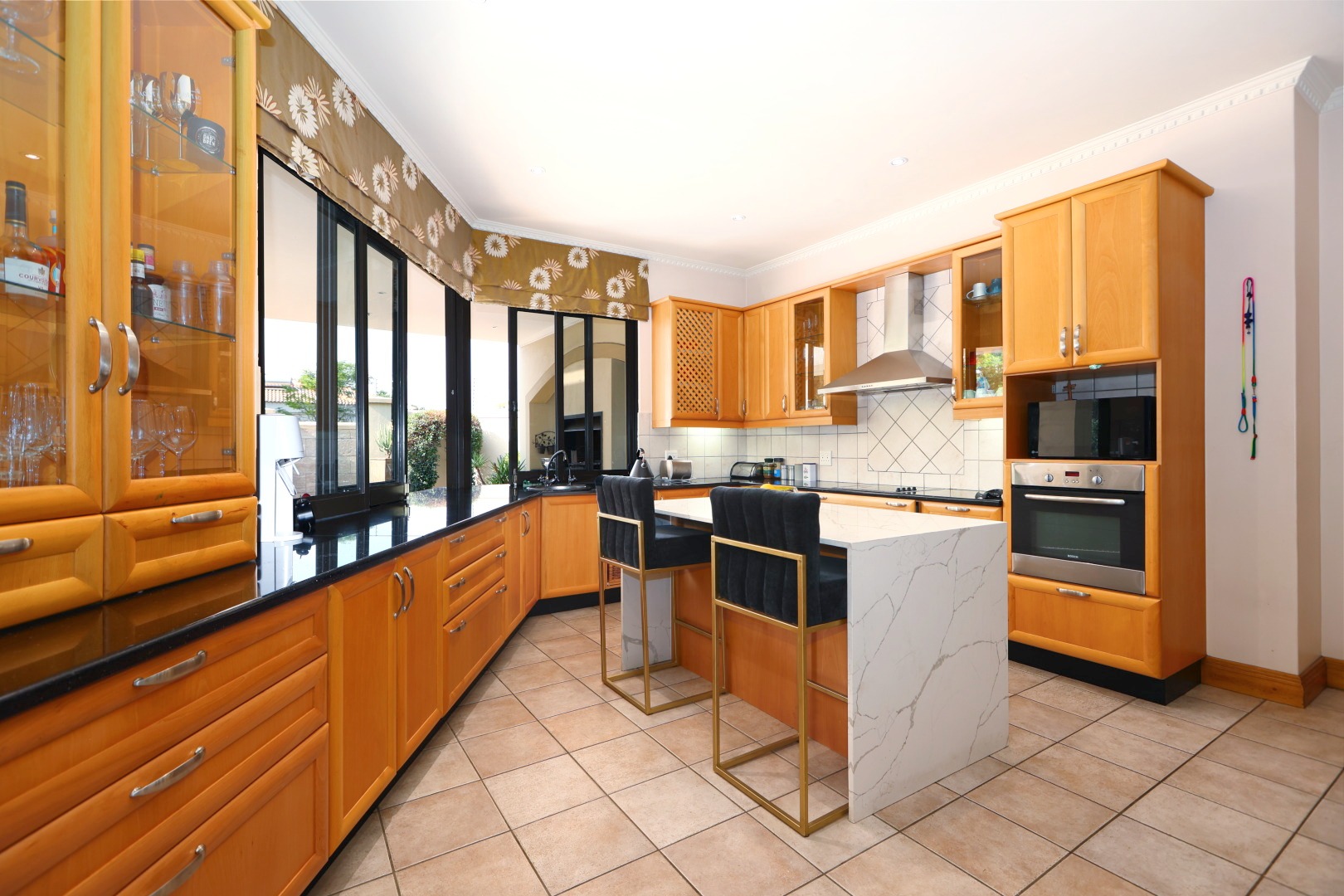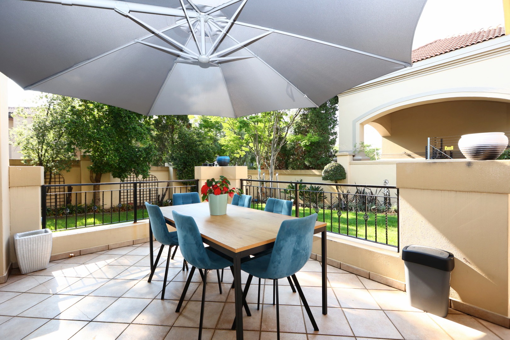 At the heart of the home, a beautiful reception area leads effortlessly onto a covered entertainment space, complete with built-in braai facilities, perfect for hosting unforgettable gatherings. This area overlooks a sparkling pool and meticulously landscaped, pet-friendly gardens, giving your family, including your pets, the space and freedom to truly feel at home.