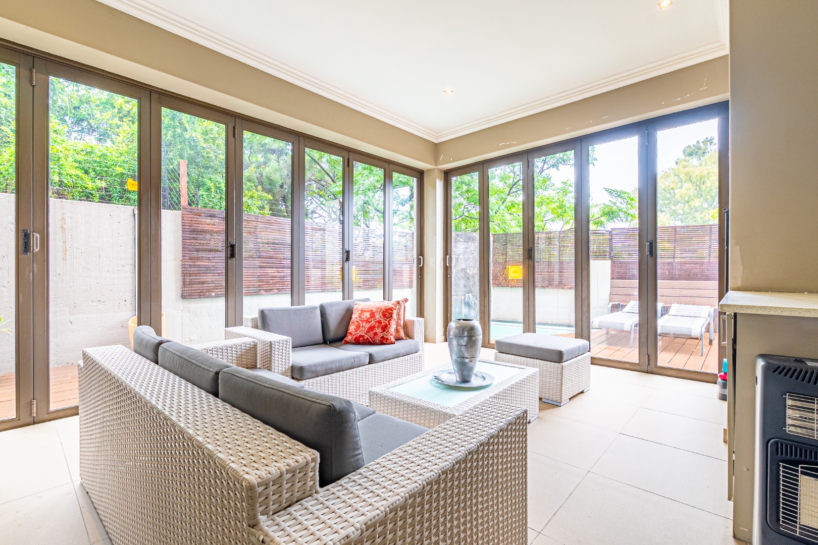 - Cover patio with stacking doors