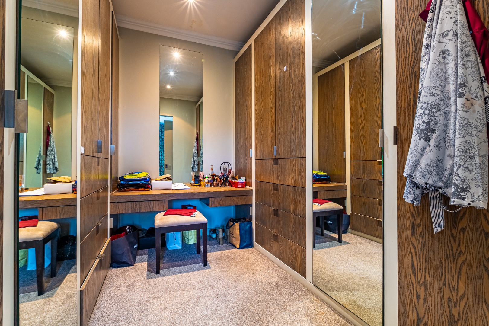 Upstairs are 4 spacious bedrooms a pajama lounge and a study. Main bedroom is en-suite while 2 bedrooms share a bathroom with separate entrances. The 4th bedroom has its own bathroom separate to the bedroom.
