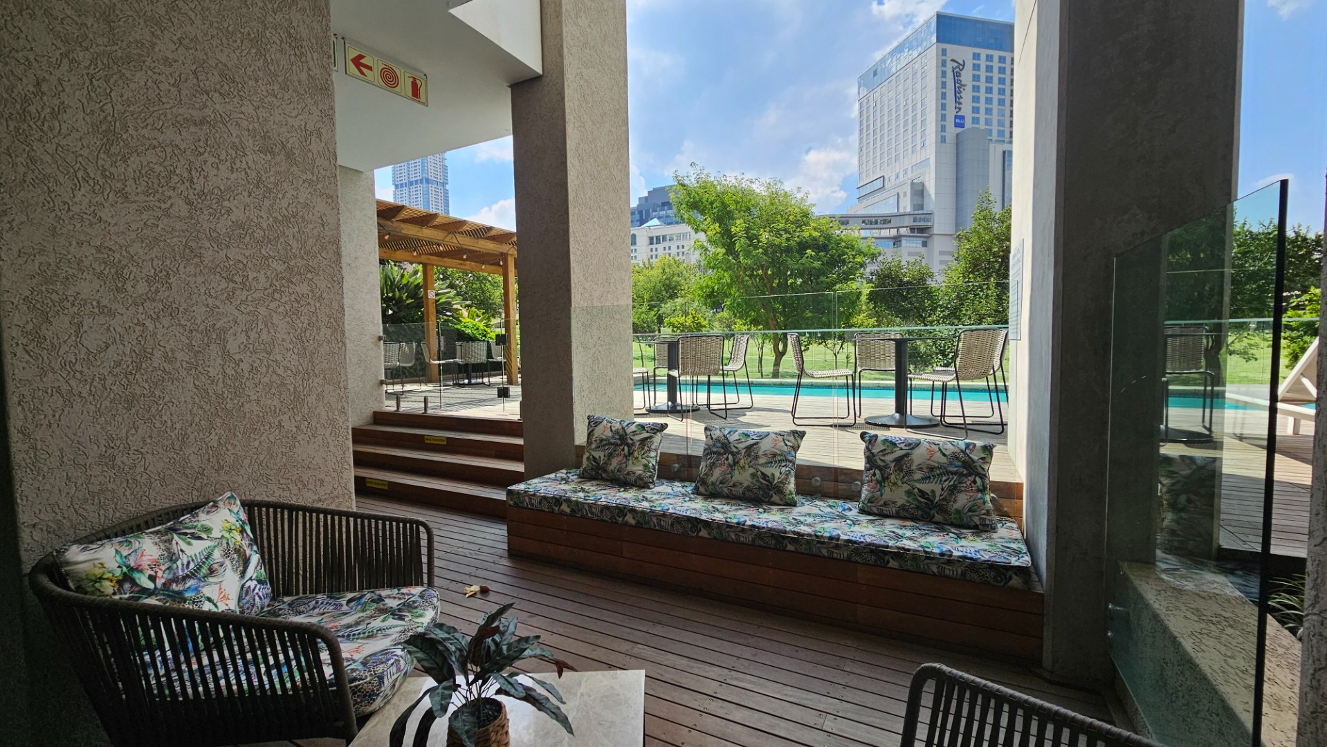 * Private Balcony with Scenic Green Views of Mushroom Park