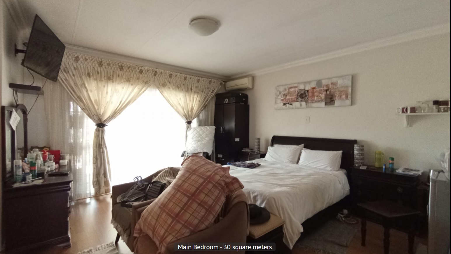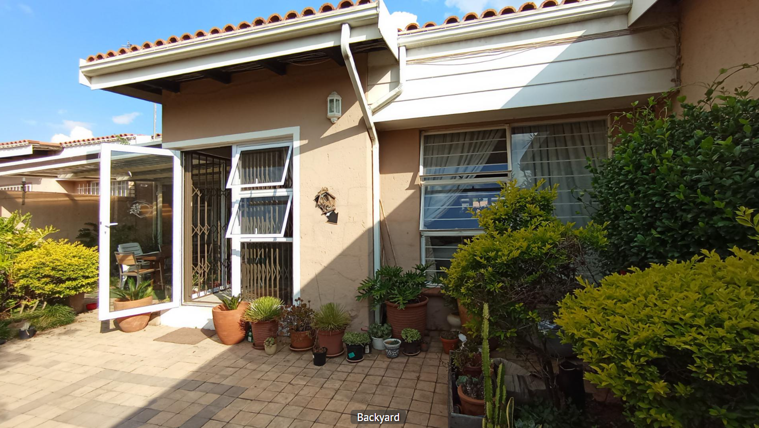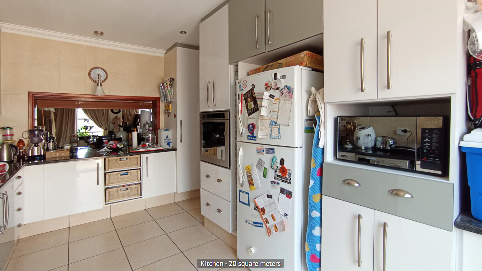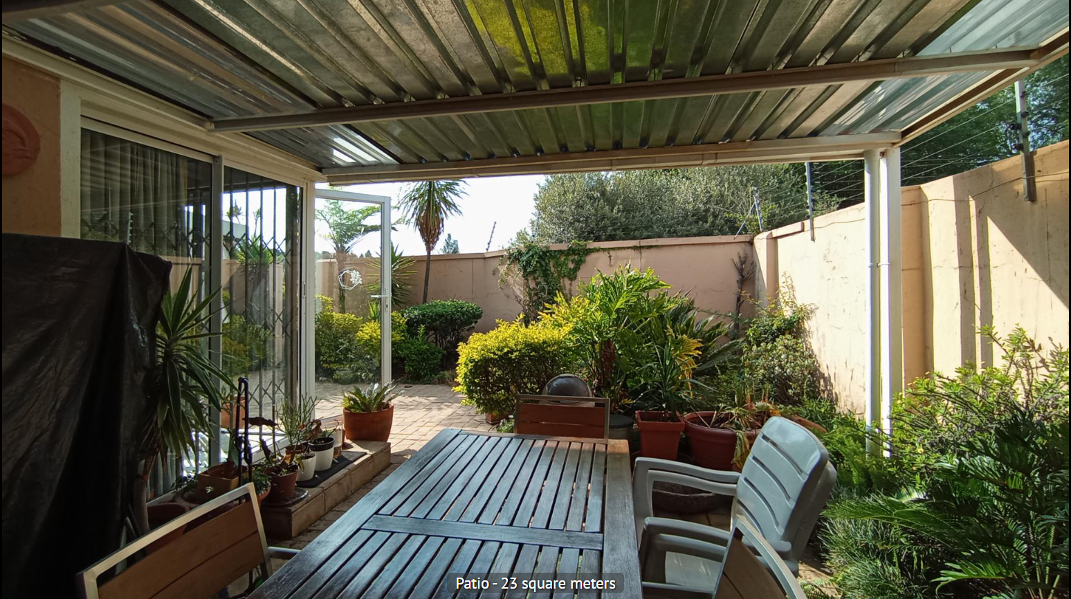 Discover this inviting 2-bedroom, 2-bathroom residence nestled within a secure estate in Sandton Central. The property presents a well-maintained exterior with a prominent security gate, robust fencing, and a paved driveway leading to a garage and additional parking bay, ensuring both convenience and peace of mind. Mature trees enhance the curb appeal, offering a welcoming first impression. Step inside to an entrance area featuring hardwood flooring and elegant crown molding, setting a refined tone. The heart of the home is a modern 20 sqm kitchen, boasting stylish two-toned cabinetry, black granite countertops, and integrated appliances including a built-in hob, oven, and extractor fan. A pass-through window connects this functional space to the living areas. The home offers two distinct dining areas, one of which is a spacious 15 sqm room with a vaulted ceiling and exposed wooden beams, adding character. The expansive 36 sqm lounge also features attractive exposed wooden beams, ample natural light from multiple windows, and an air conditioning unit for comfort. With 128 sqm under roof on a 319 sqm erf, this property provides comfortable living spaces. Located in the vibrant Sandton Central, this estate property offers a desirable address in one of South Africa's premier metropolitan areas. Enjoy the benefits of secure estate living combined with easy access to urban amenities. Key Features: * 2 Bedrooms, 2 Bathrooms (1 En-suite) * Modern 20 sqm Kitchen with Granite Countertops * Spacious 36 sqm Lounge with Exposed Beams * Two Dining Areas, one with Vaulted Ceiling * 1 Garage and 1 Parking Bay * Secure Estate Living * Air Conditioning in Lounge * Hardwood Flooring in Entrance * 128 sqm Floor Size on 319 sqm Erf
