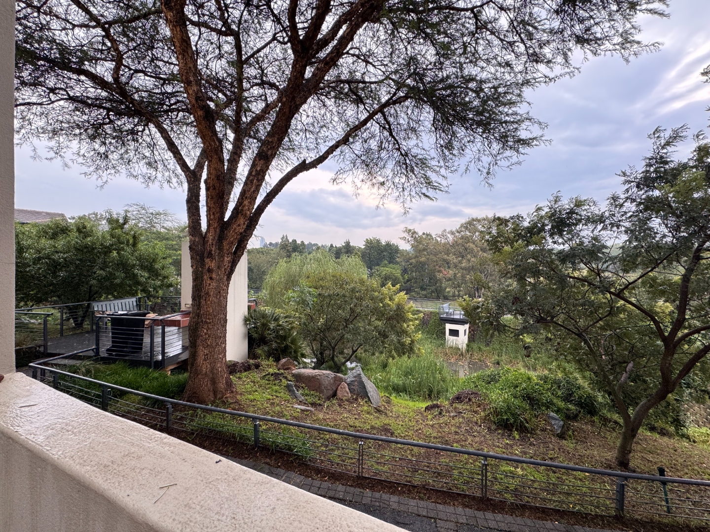 Step outside to enjoy a private ground-floor patio and a small garden area, bordered by lush greenery, ideal for outdoor relaxation. The property also features a balcony with scenic views of the natural landscape, providing a tranquil escape. Residents of this secure complex benefit from exceptional lifestyle amenities, including a communal swimming pool, a well-equipped gym, a tennis court, a clubhouse, a sauna, and a communal braai area, fostering a vibrant community atmosphere.
