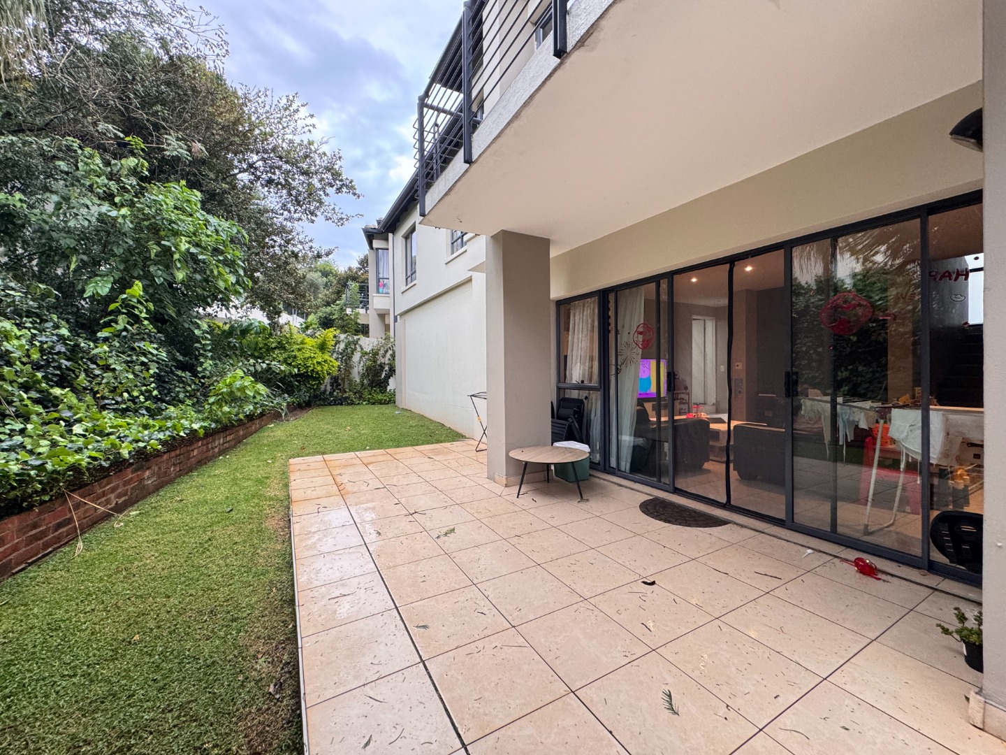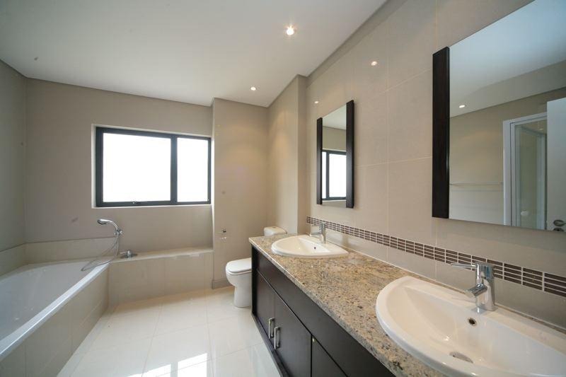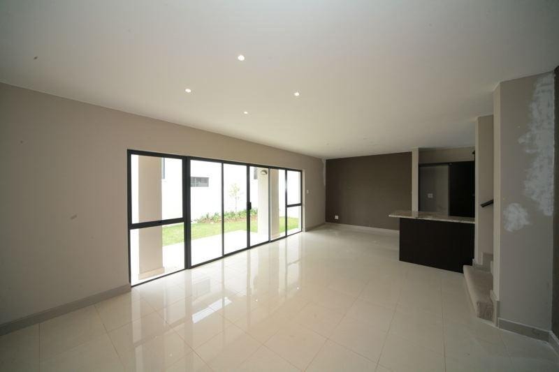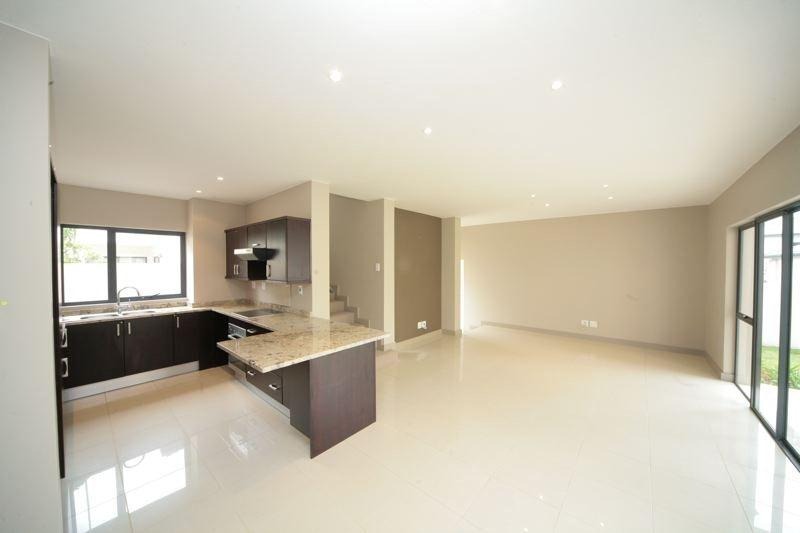 Discover this contemporary 3-bedroom, 3.5-bathroom residence spanning 215 sqm, nestled within a secure Esprit Estate in Wendywood, Sandton. The property immediately impresses with its modern aesthetic and seamless open-plan design, featuring large sliding glass doors that invite abundant natural light and create an effortless indoor-outdoor flow. The heart of the home is a stylish kitchen, boasting dark cabinetry, granite countertops, integrated appliances, and a convenient breakfast bar, perfect for both everyday living and entertaining.