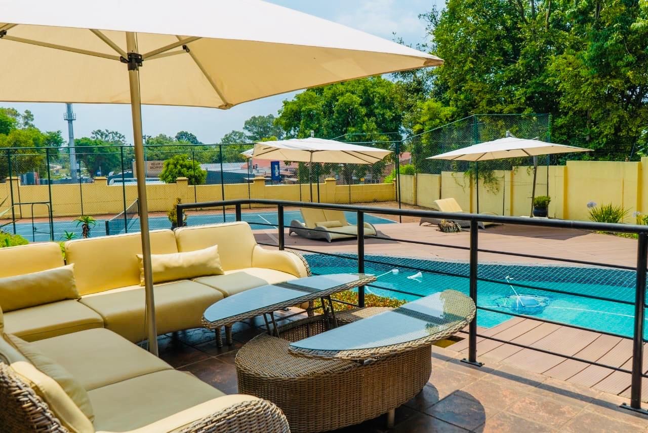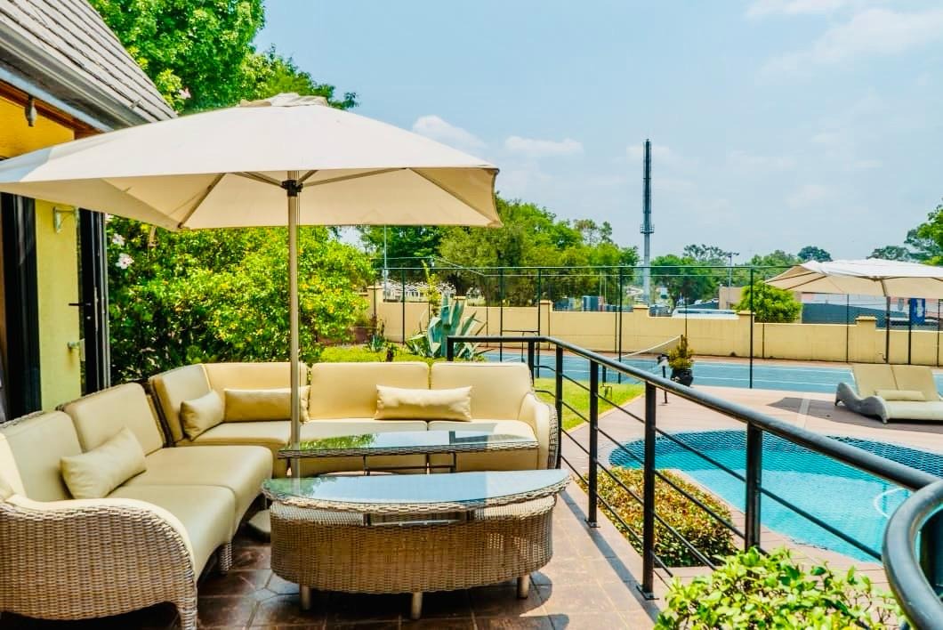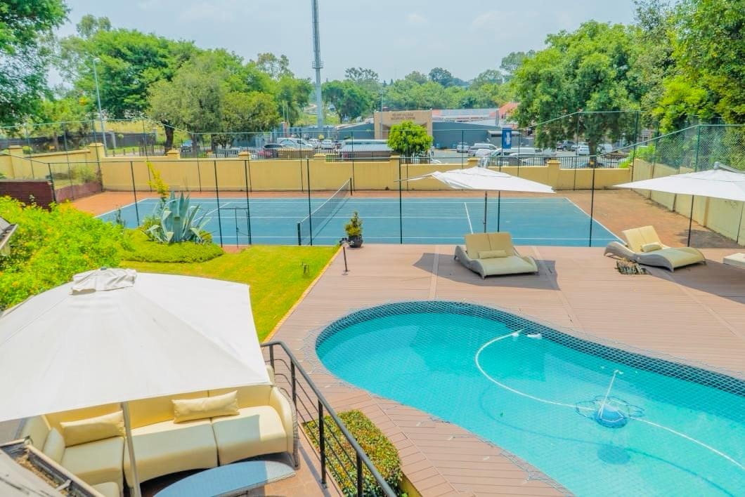 Accommodation comprises four generously proportioned bedrooms, including a luxurious en-suite, complemented by an additional full bathroom and a convenient guest toilet, ensuring comfort and privacy for all residents. The home is designed for a lifestyle of leisure and wellness, featuring a sparkling swimming pool, a spacious deck perfect for al fresco dining, a private tennis court, and a well-equipped gym. Additional amenities include staff quarters, a dedicated laundry room, and ample storage.