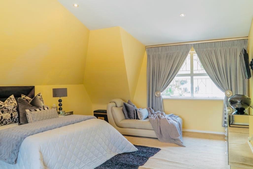 Discover an exquisite residence in the heart of Sandton Kelvin, a prestigious address offering unparalleled luxury and sophisticated living. This magnificent 4-bedroom home immediately captivates with its distinctive facade and generous off-street parking, leading to an integrated double garage, ensuring both convenience and grandeur upon arrival. The property’s kerb appeal is undeniable, hinting at the refined interiors within.