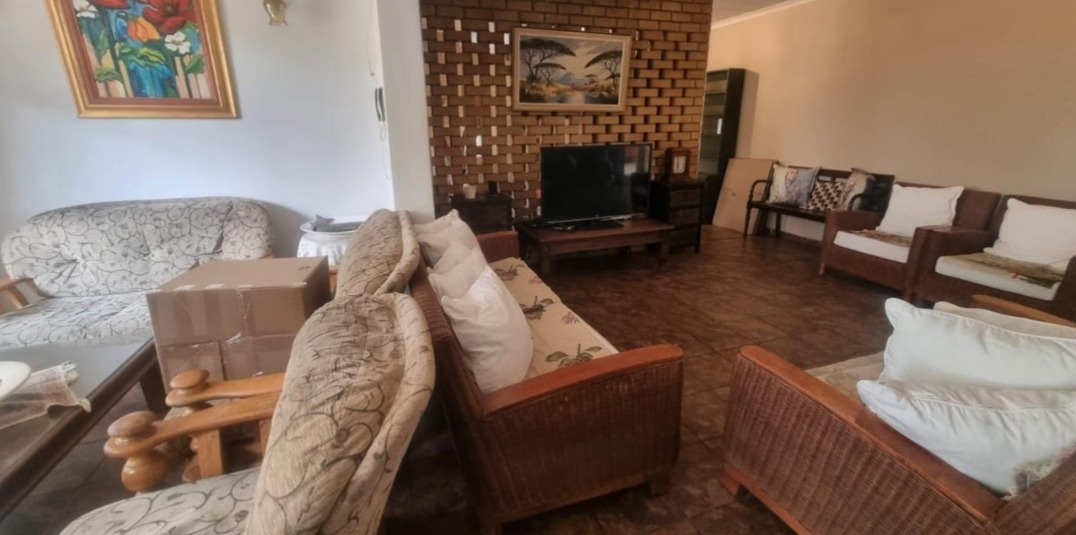 Outside, you'll discover a fantastic, spacious backyard, as well as a 1 bedroom flatlet with BIC, full bathroom, partially complete kitchen, lounge and dining room. The whole property is fenced for privacy and features a lovely covered patio, ideal for braais or just chilling out. The large shade trees provides a cool spot on sunny days, and there’s even a Wendy house for extra storage or a play area. With four garages and two additional open parking spaces, there’s plenty of room for all your vehicles and toys. Plus, with electric fencing, you can enjoy peace of mind. Pets are welcome here too, so your furry friends will love the garden!