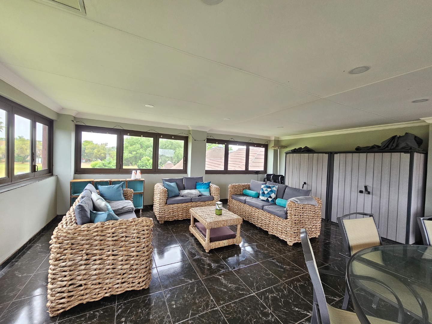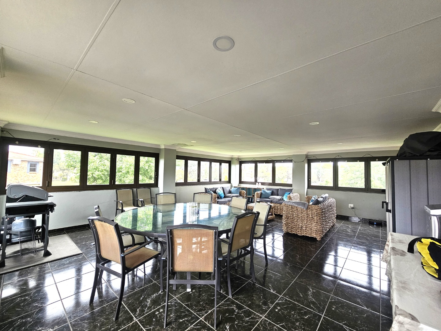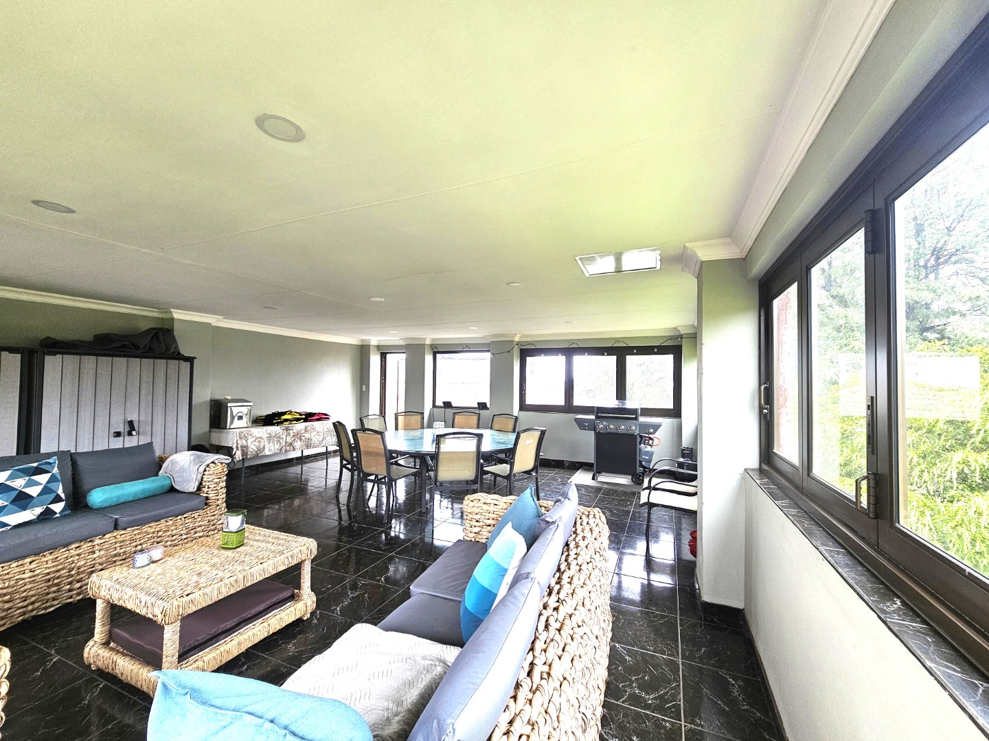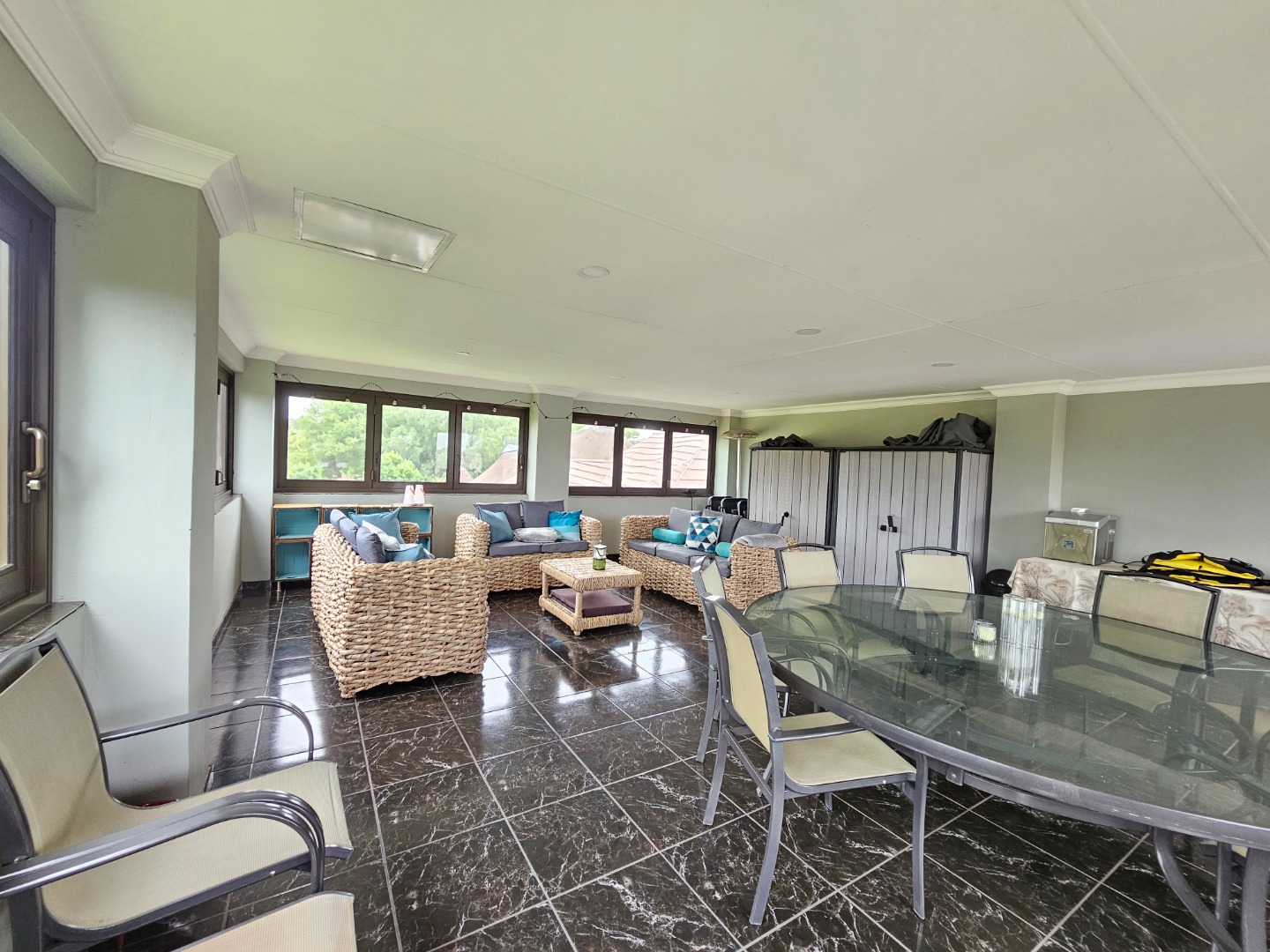 - 10-seater glass table upstairs (entertainment area) included