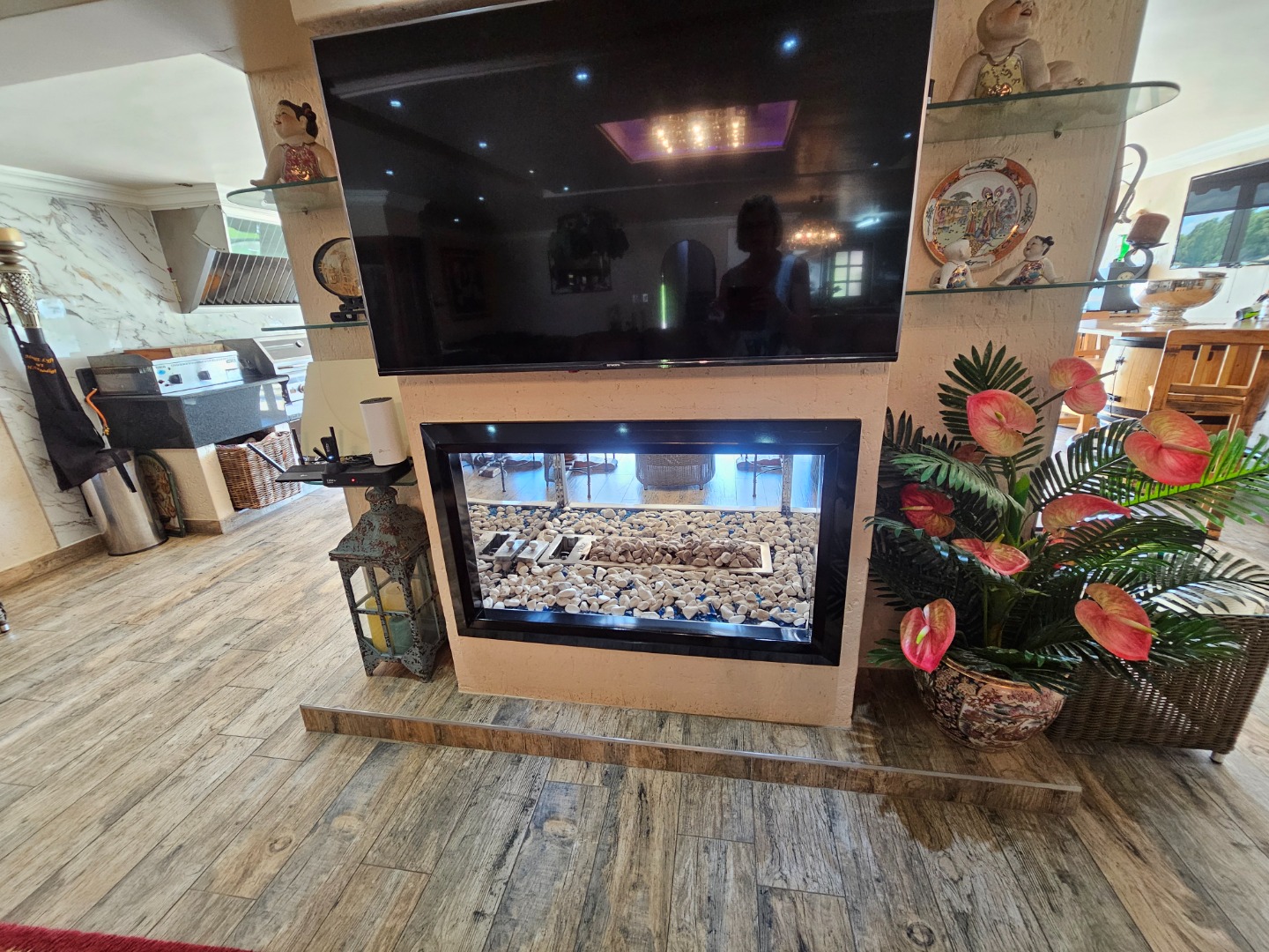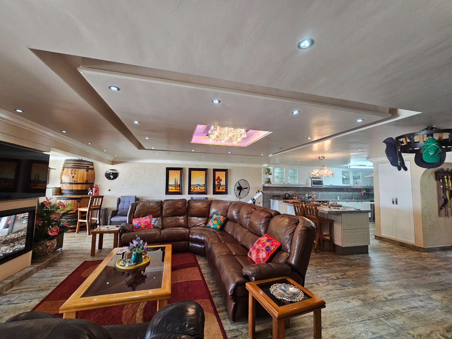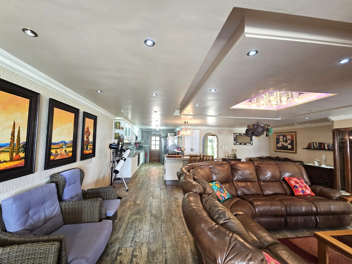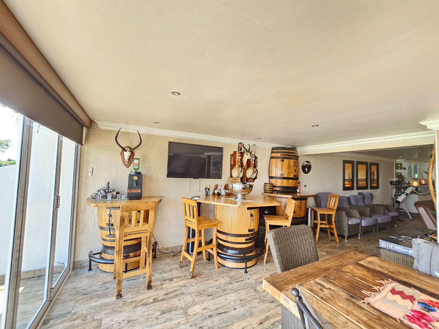 - Spacious open-plan kitchen and living area leading to an enclosed patio with built-in braai