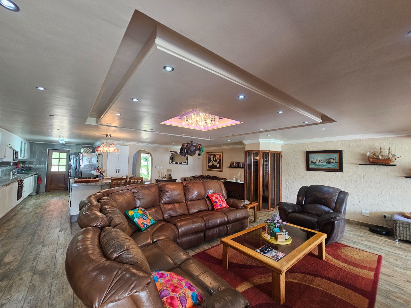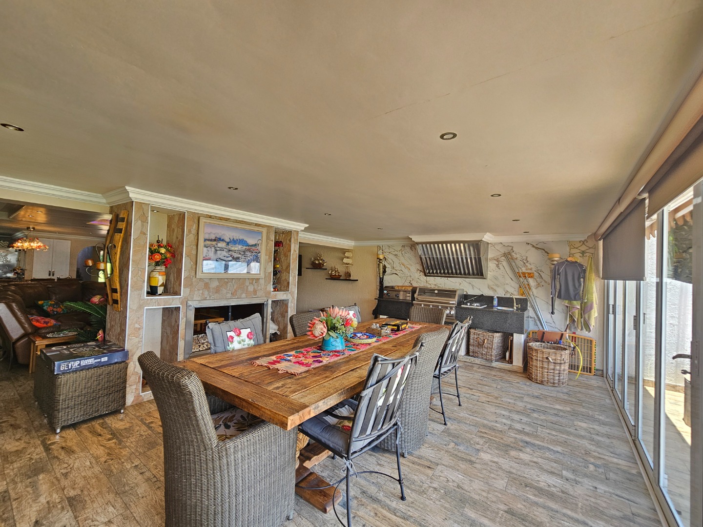 - Spacious open-plan kitchen and living area leading to an enclosed patio with built-in braai