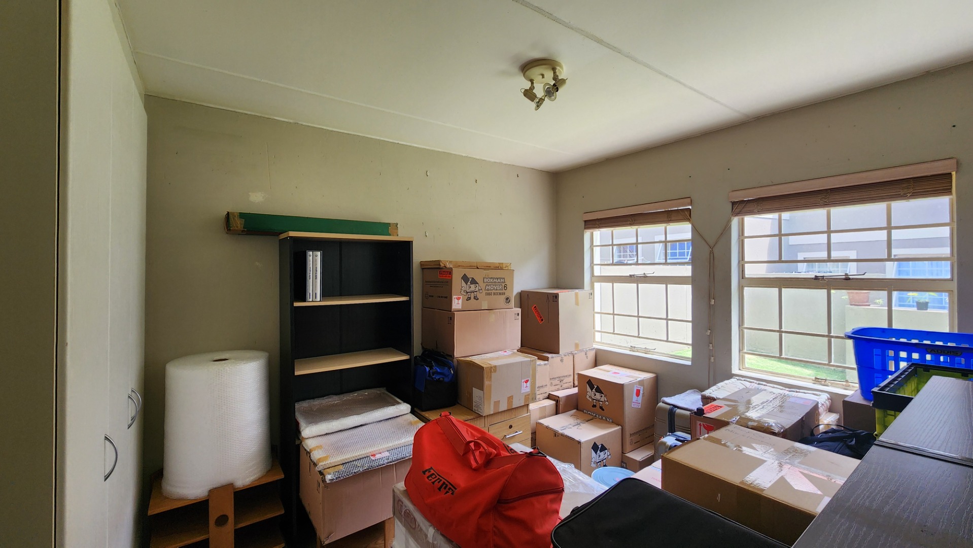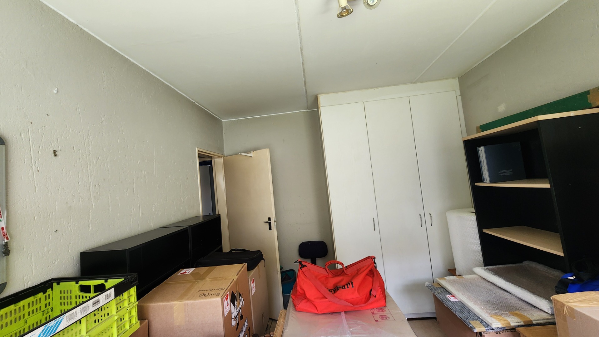 Second bedroom with tiled flooring, built-in cupboards, and space for a queen-size bed