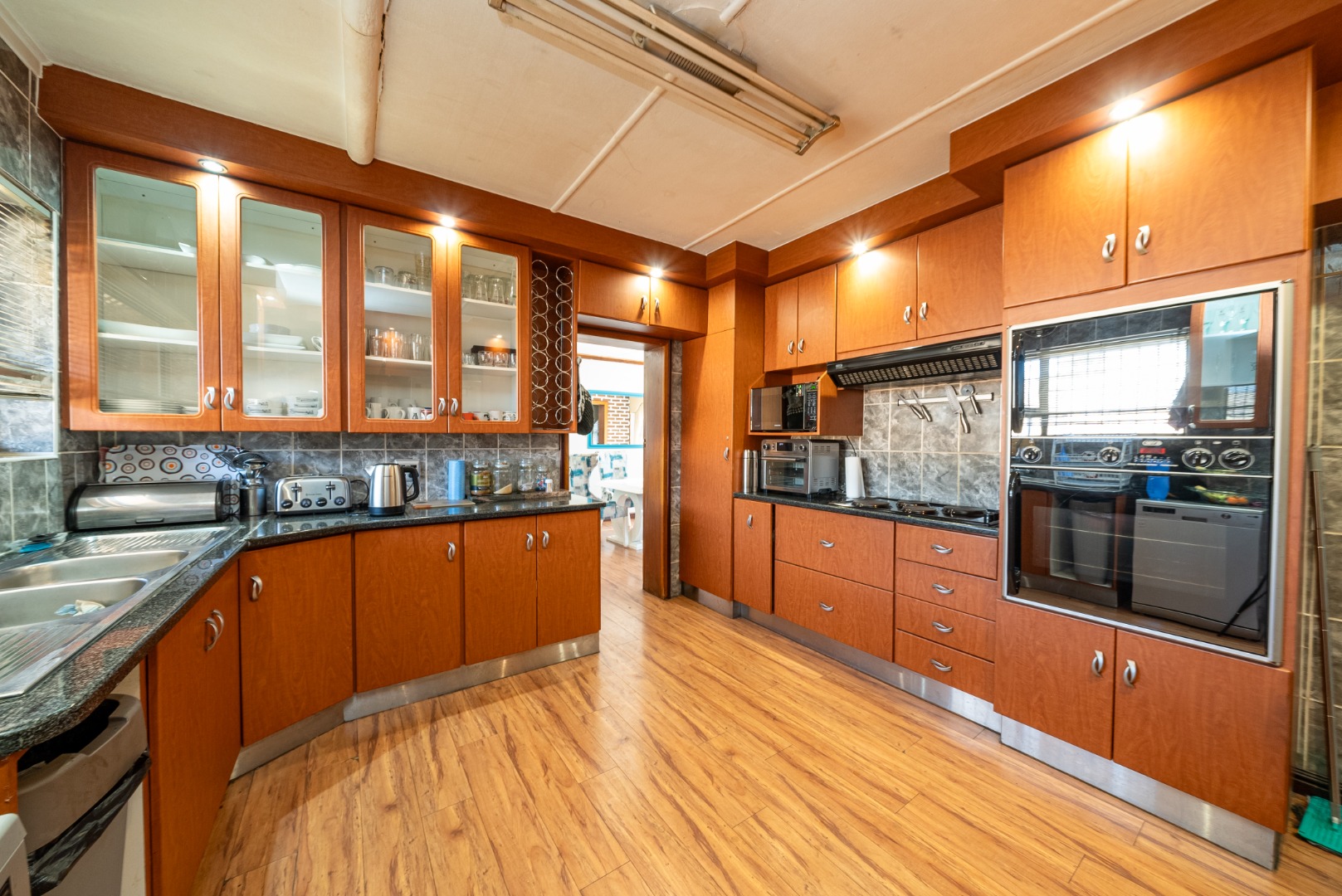 Outdoors, enjoy a landscaped garden surrounding a heated swimming pool, ideal for relaxed family living. The entertainment area includes a lapa with a built-in bar and jacuzzi, making it perfect for hosting guests.