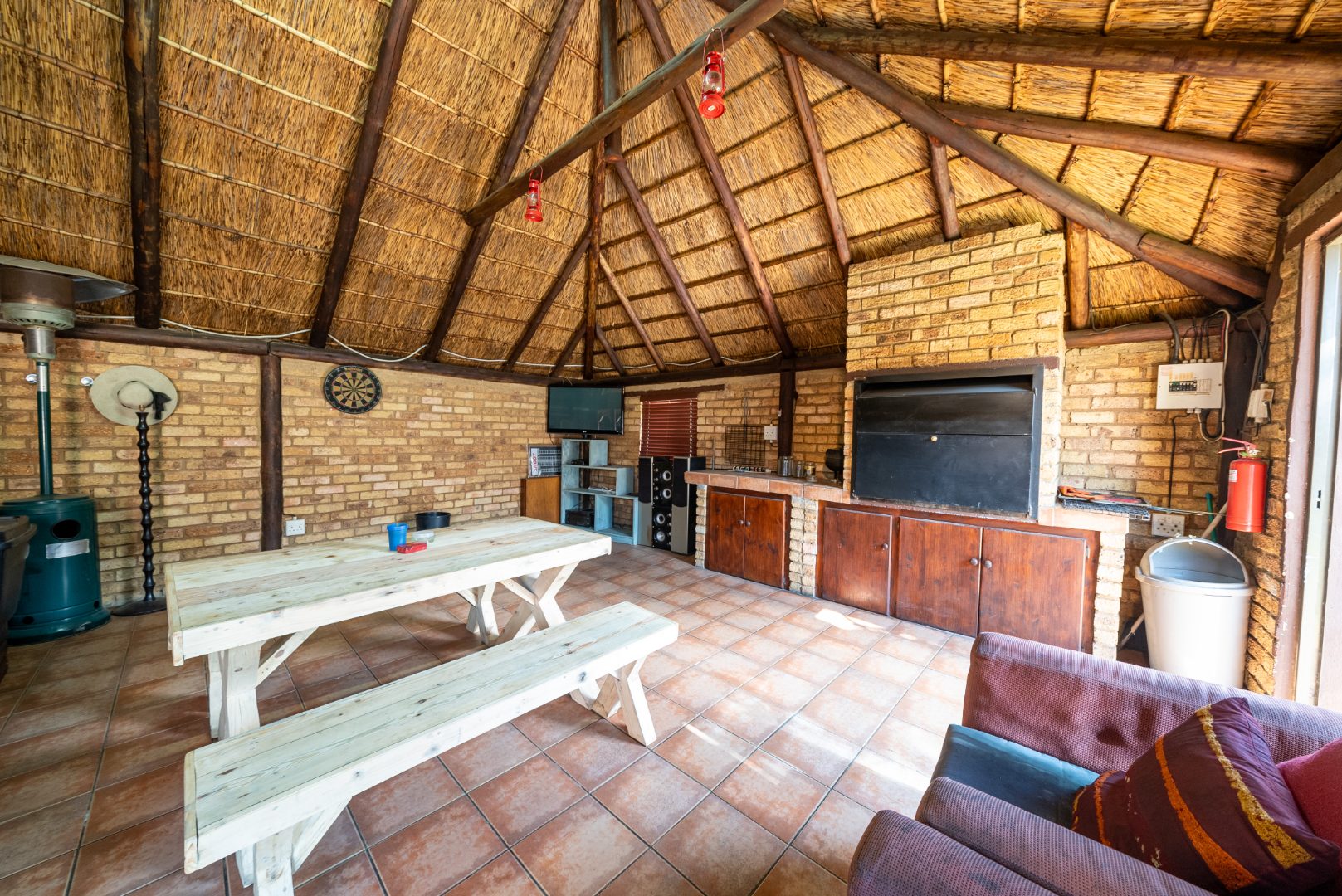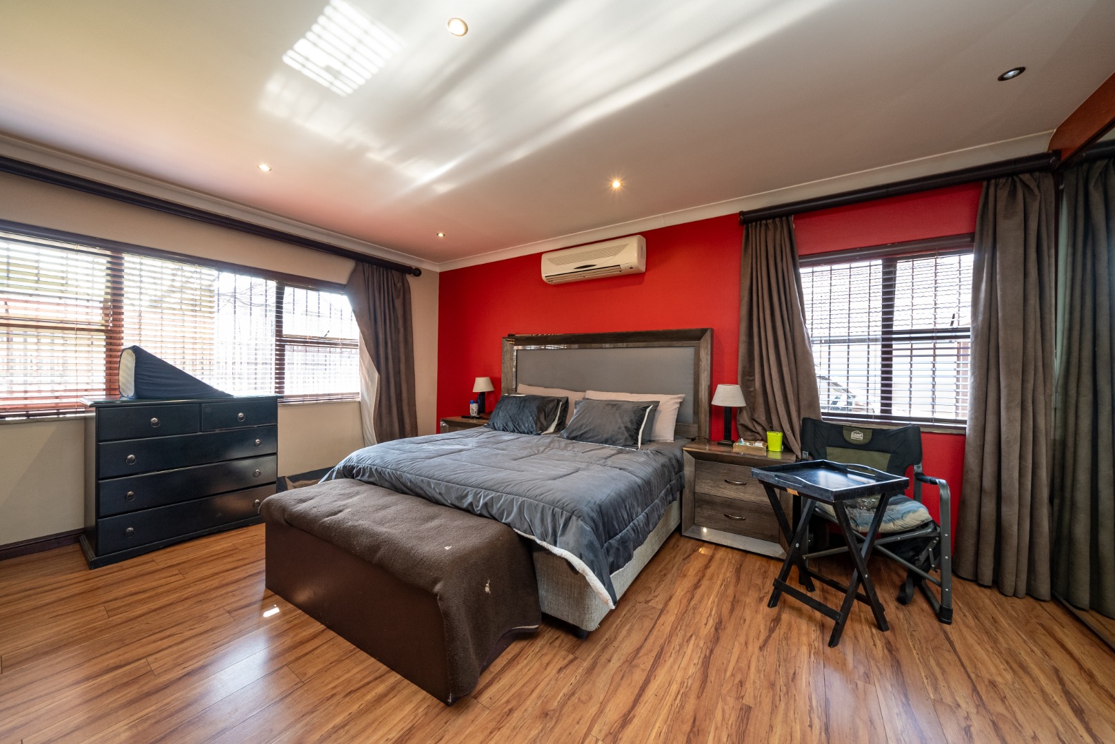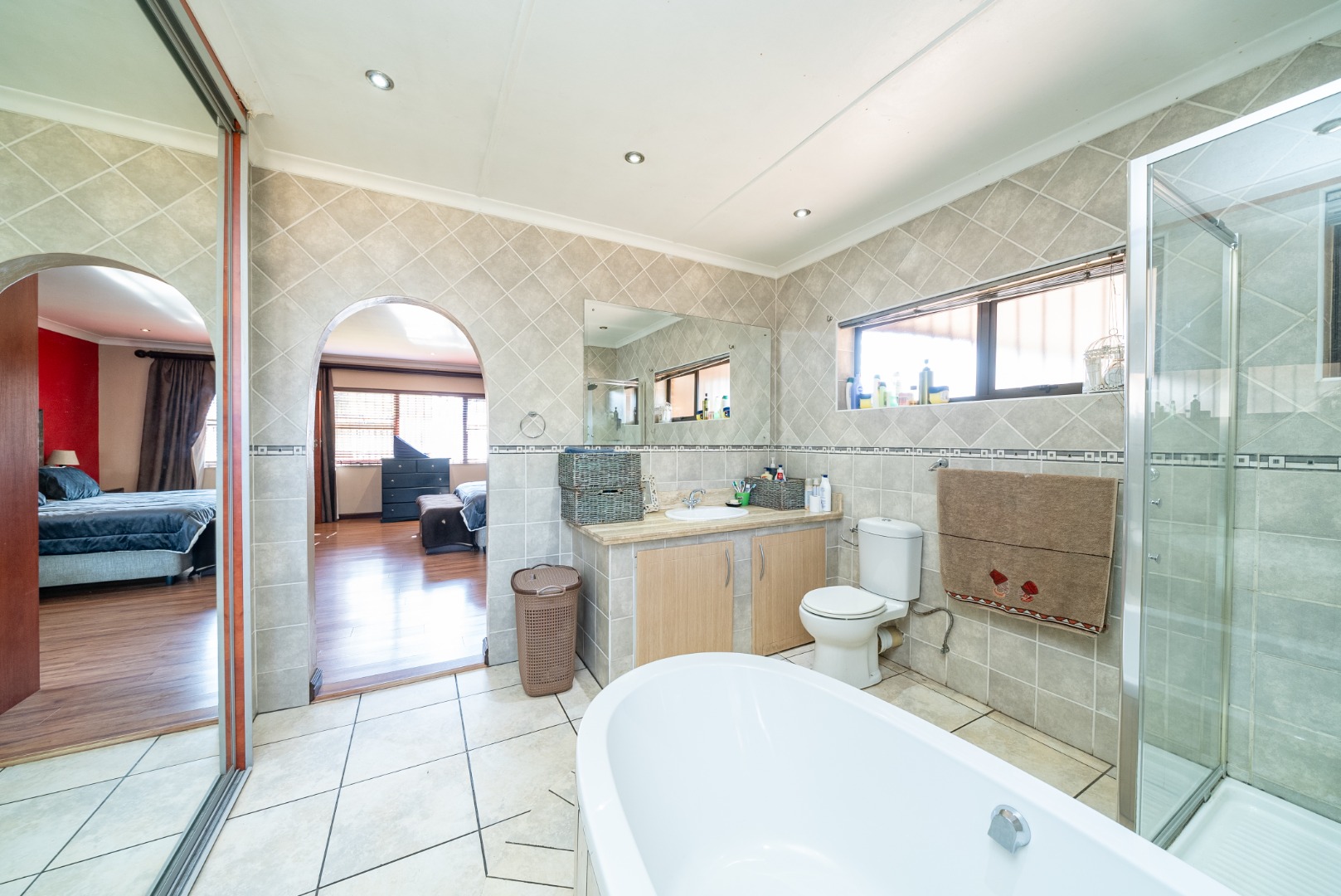 Outdoors, enjoy a landscaped garden surrounding a heated swimming pool, ideal for relaxed family living. The entertainment area includes a lapa with a built-in bar and jacuzzi, making it perfect for hosting guests.