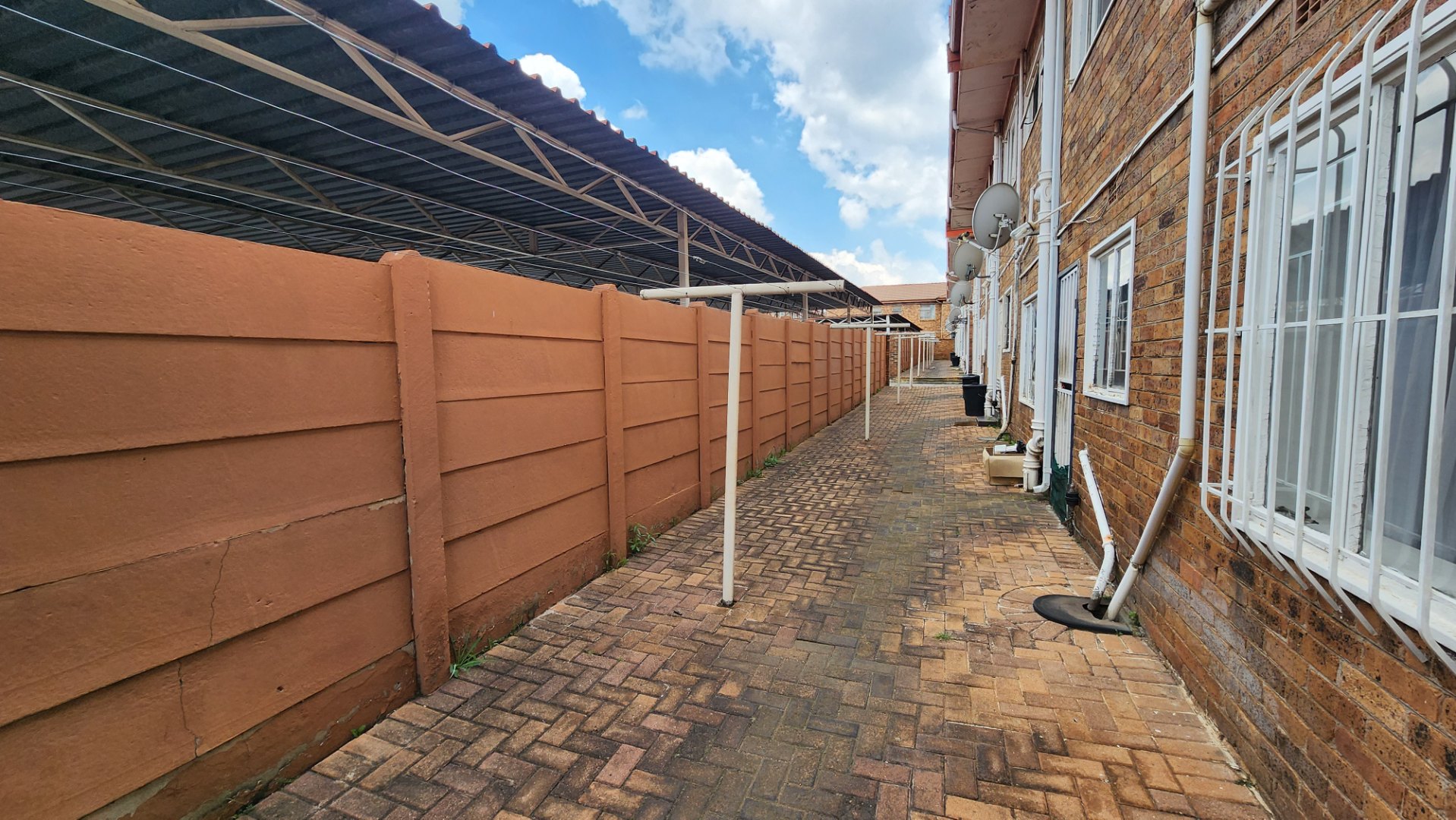 Garden service is included once per week. The unit offers a private garden with its own entrance onto De Bruin Street. Parking consists of one covered carport and one open bay. There is a side entrance into the complex, and a maximum of two vehicles is permitted.