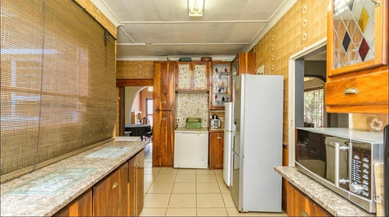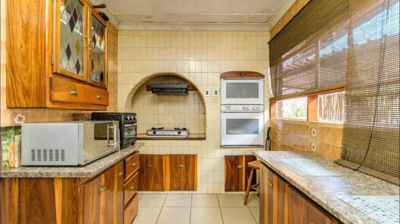 The functional kitchen, includes a built-in double oven, complemented by ample wooden cabinetry. Outside, a generous covered patio, is perfect for year-round entertaining. The large 1100 sqm erf features a garden and extensive paving.