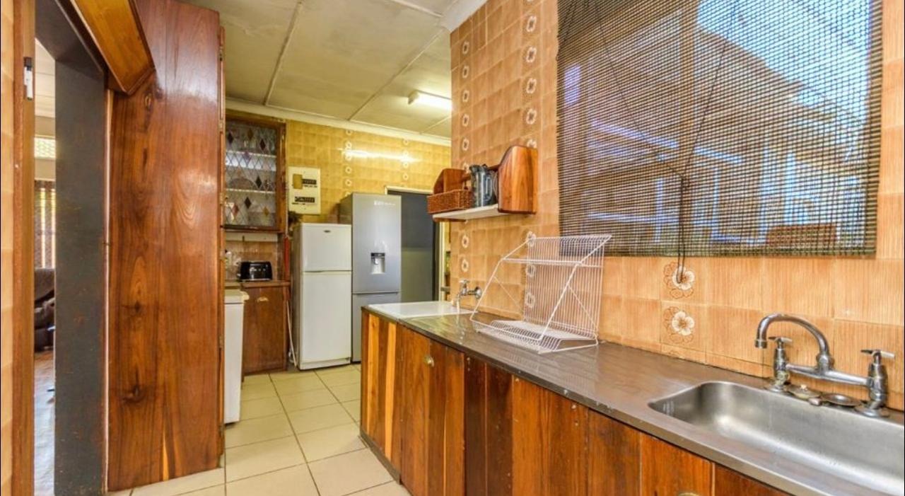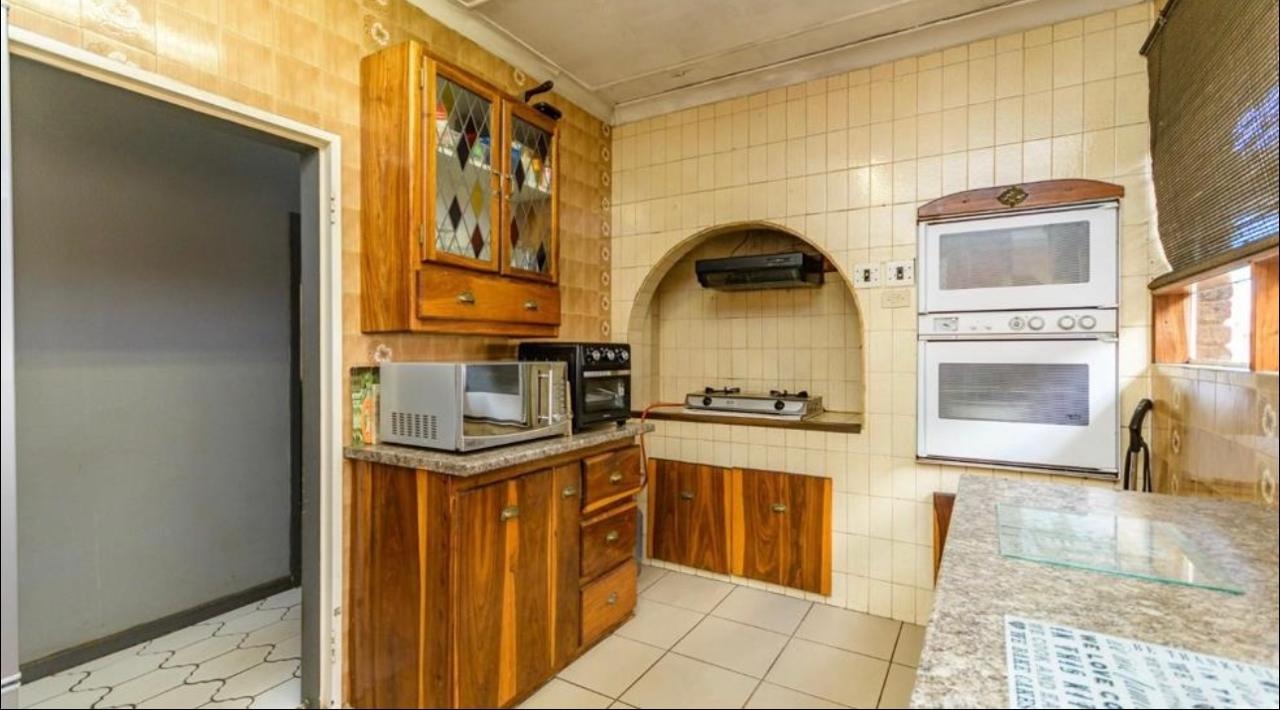 The functional kitchen, includes a built-in double oven, complemented by ample wooden cabinetry. Outside, a generous covered patio, is perfect for year-round entertaining. The large 1100 sqm erf features a garden and extensive paving.