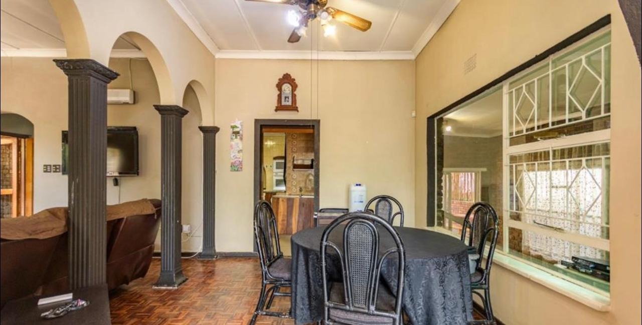 Discover this inviting 3-bedroom, 2-bathroom home available for rent in the established suburb of Lambton, Germiston. This residence offers a comfortable living experience with a spacious lounge and a well-appointed kitchen. The open-plan living and dining area features distinctive parquet flooring and arched doorways, with air conditioning and ceiling fans enhancing comfort.