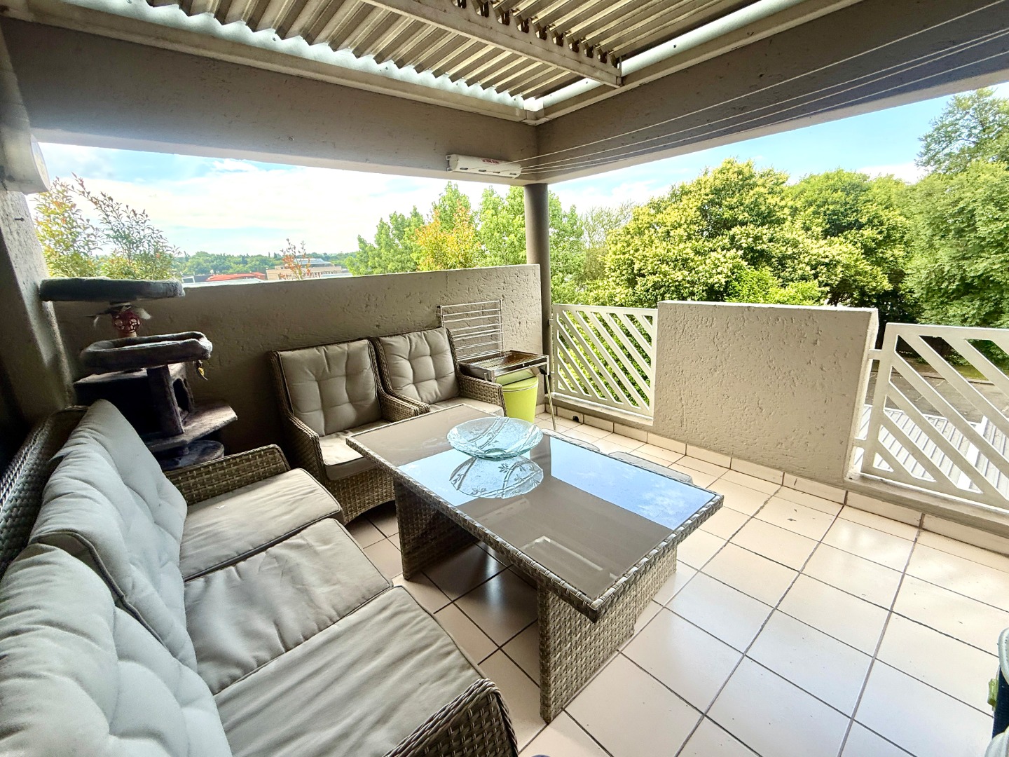 Ideally situated, this private top floor apartment boasts 2 bedrooms with laminated flooring and 2 bathrooms (main en-suite). The complex has full 24/hour security and is most suitable for a couple, working professional or small family.