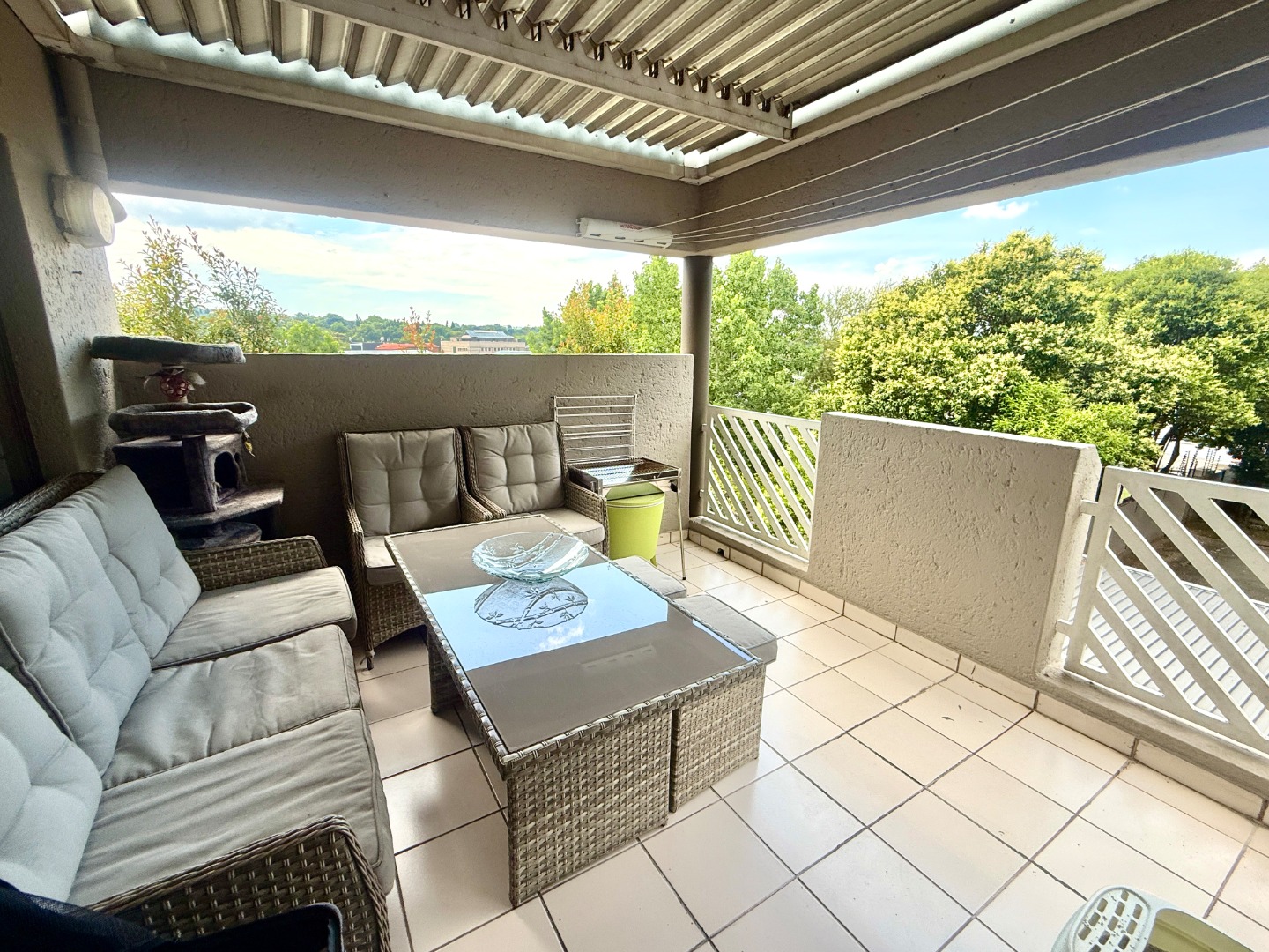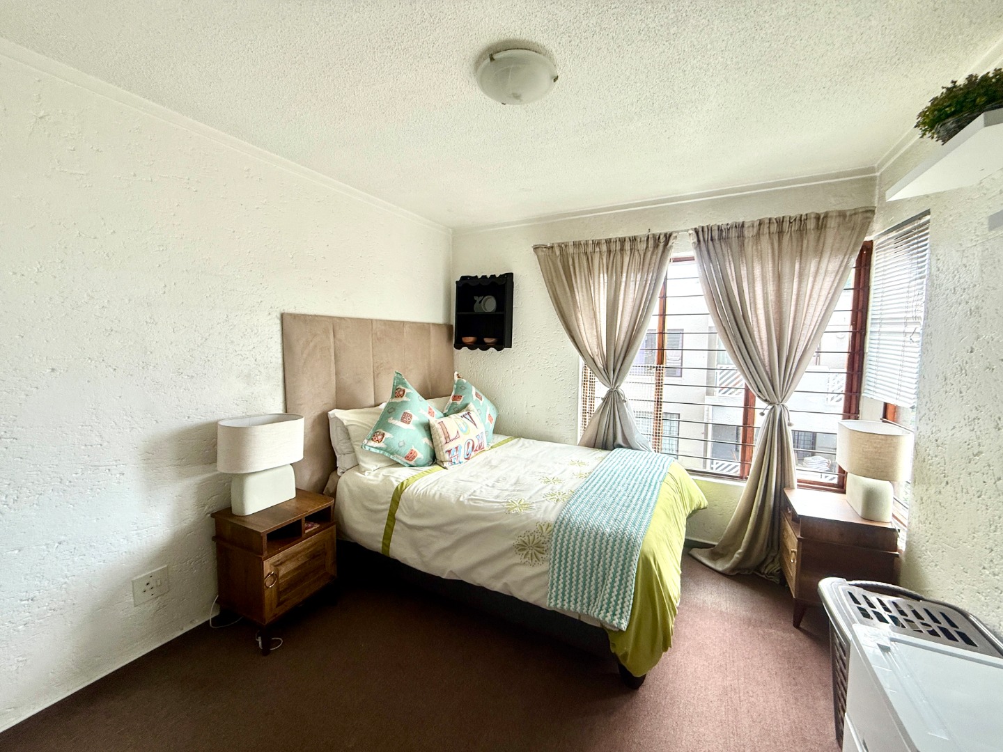 Ideally situated, this private top floor apartment boasts 2 bedrooms with laminated flooring and 2 bathrooms (main en-suite). The complex has full 24/hour security and is most suitable for a couple, working professional or small family.