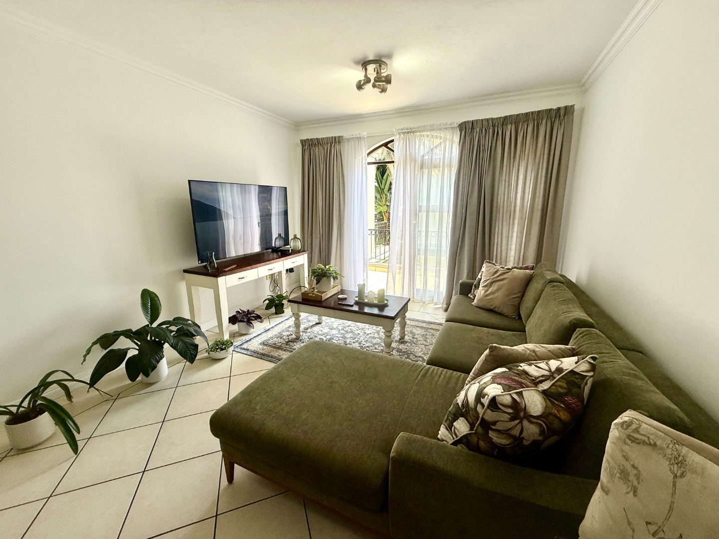 The living area is sizeable and leads to the balcony which overlooks the bottom garden of the complex.