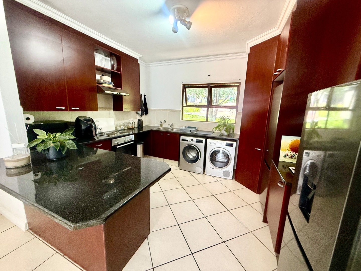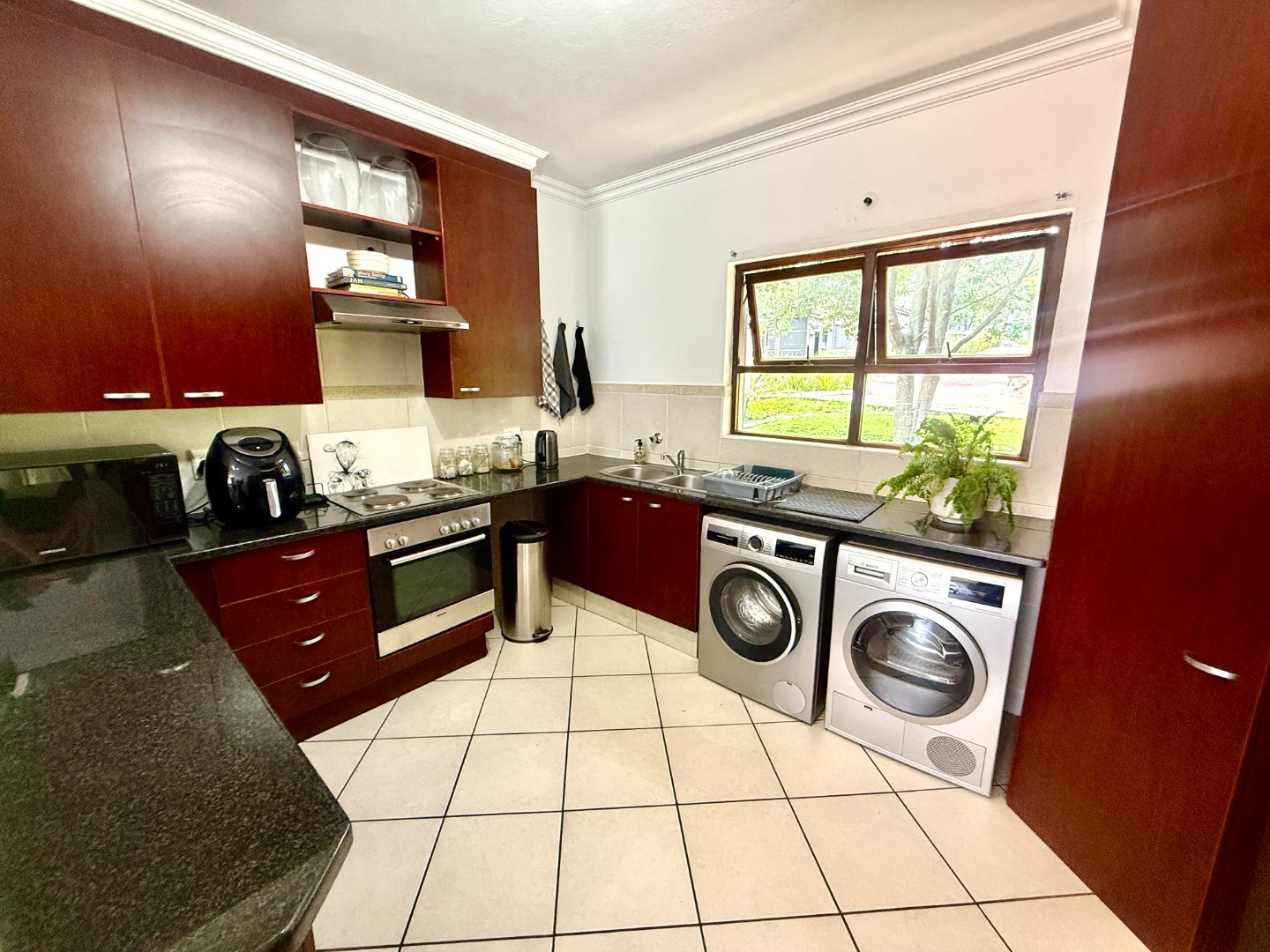 The modern kitchen has granite tops, offers ample cupboard space and there is also space for 2 under-counter appliances.