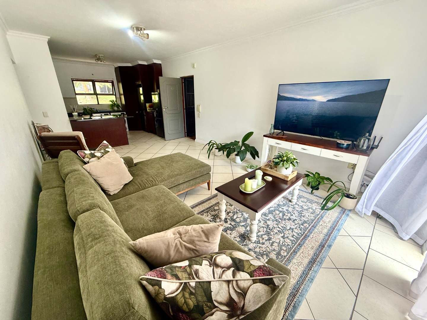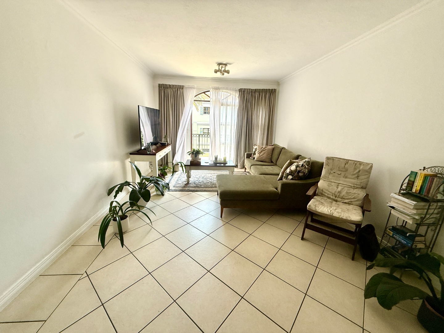 The living area is sizeable and leads to the balcony which overlooks the bottom garden of the complex.