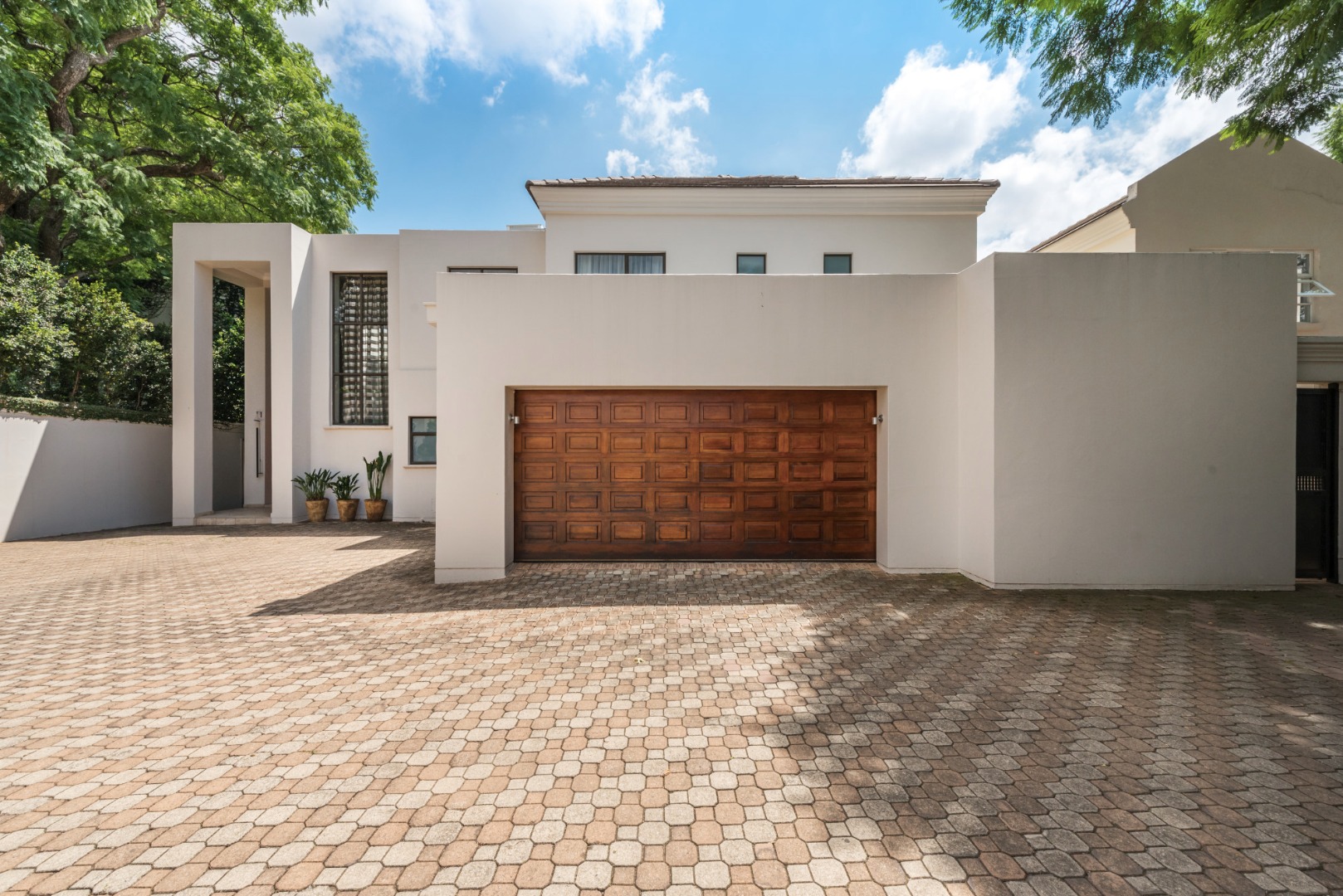 Designed for sophisticated living, the property includes a private swimming pool, a meticulously maintained garden, and a covered patio with a built-in gas braai, perfect for outdoor entertaining. A dedicated staff quarters with 2 rooms and kitchenette and bathroom and ample storage further enhance convenience. With four parking spaces, including two garages, and the allowance for pets, this unfurnished home is ideally suited for discerning families or professionals seeking a premium rental experience.