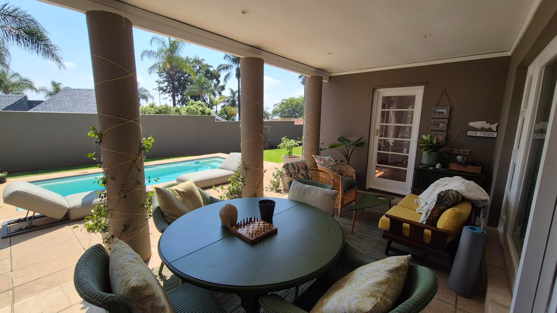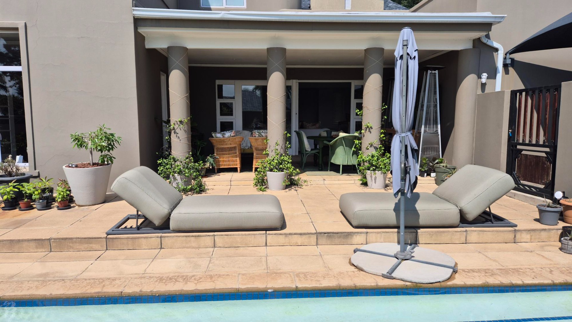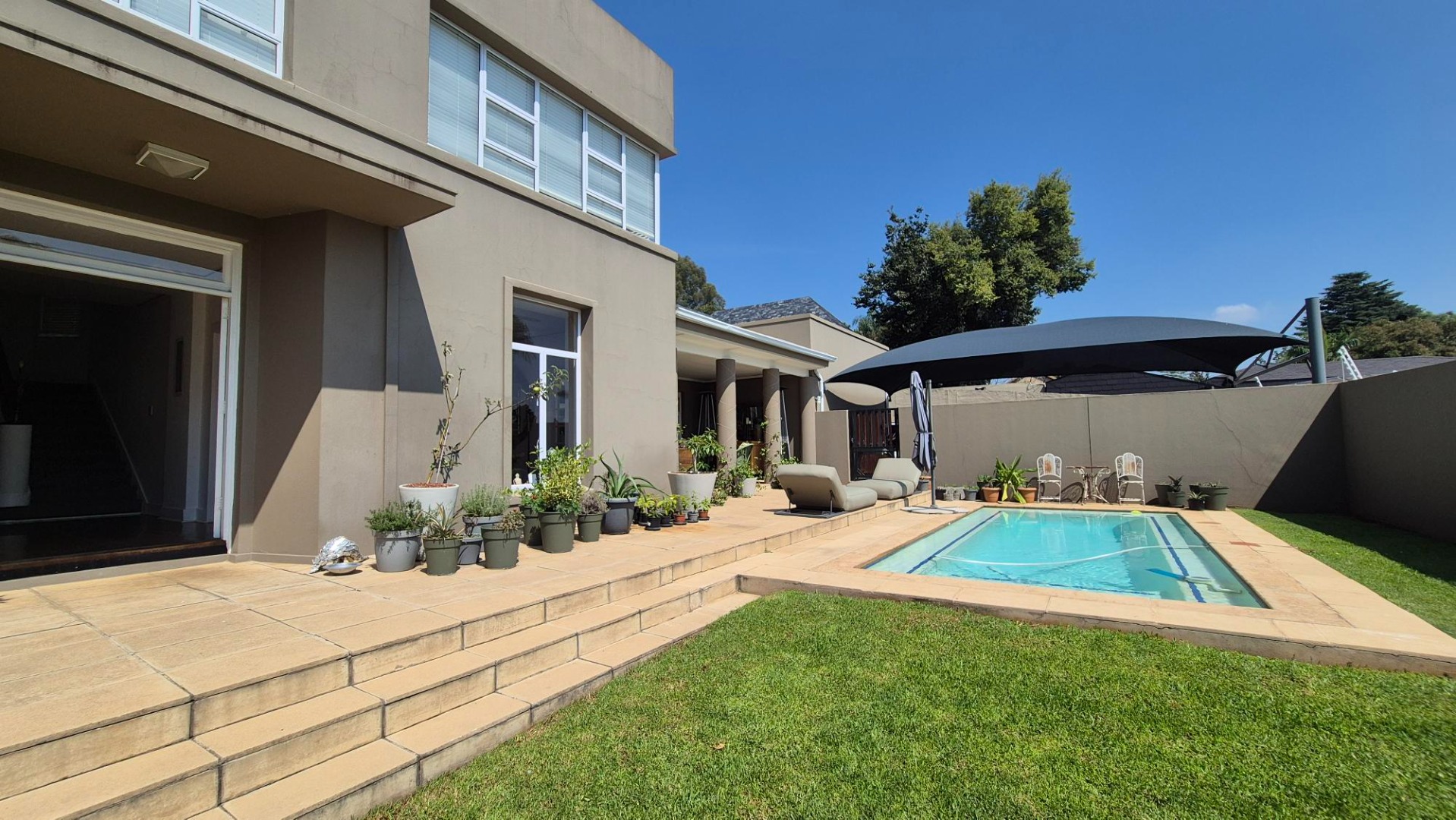 Step inside to discover a well-appointed interior featuring two spacious lounges, a dedicated dining room, and an additional family room, which leads onto a covered outside patio and pool area, providing versatile spaces for relaxation and entertainment. The modern kitchen includes a convenient pantry, catering to all culinary needs. Adjacent to the kitchen is a scullery, and a full outside laundry is available for appliances and additional storage. For those working from home, a landing study offers a quiet and productive environment. Two of the three bedrooms benefit from en-suite bathrooms, complemented by a further full bathroom and a guest toilet for the third bedroom. The Main suite offers a dressing closet, as well as an outdoor shower next to the spacious Main-en-suite bathroom.