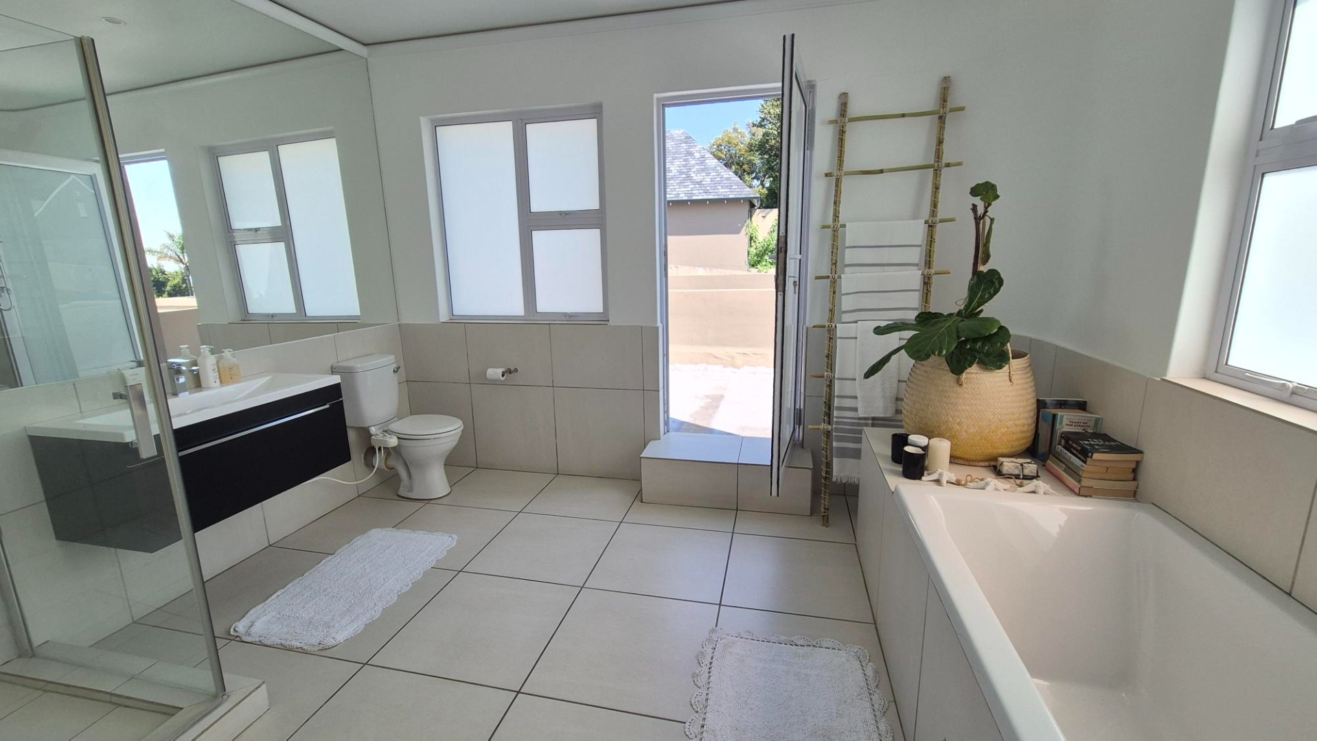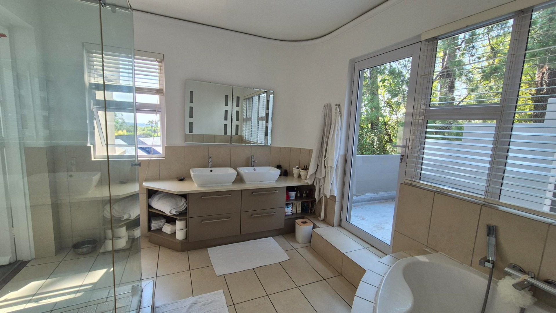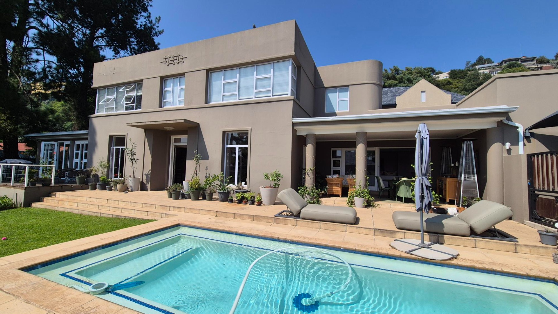 Step inside to discover a well-appointed interior featuring two spacious lounges, a dedicated dining room, and an additional family room, which leads onto a covered outside patio and pool area, providing versatile spaces for relaxation and entertainment. The modern kitchen includes a convenient pantry, catering to all culinary needs. Adjacent to the kitchen is a scullery, and a full outside laundry is available for appliances and additional storage. For those working from home, a landing study offers a quiet and productive environment. Two of the three bedrooms benefit from en-suite bathrooms, complemented by a further full bathroom and a guest toilet for the third bedroom. The Main suite offers a dressing closet, as well as an outdoor shower next to the spacious Main-en-suite bathroom.
